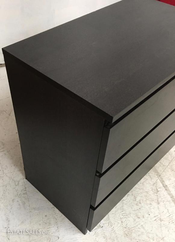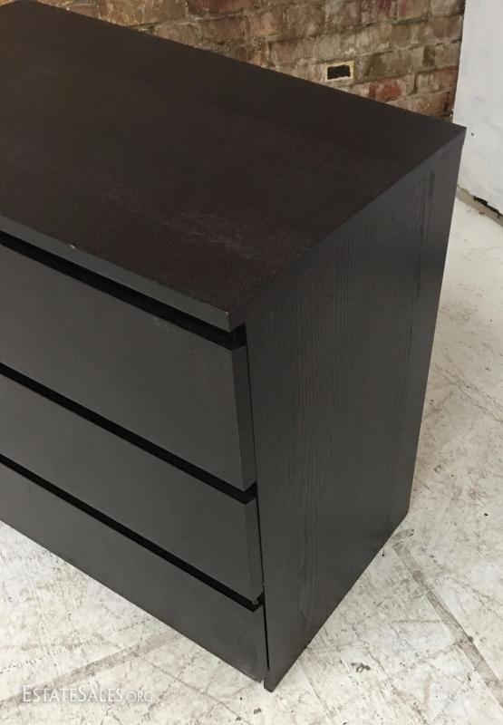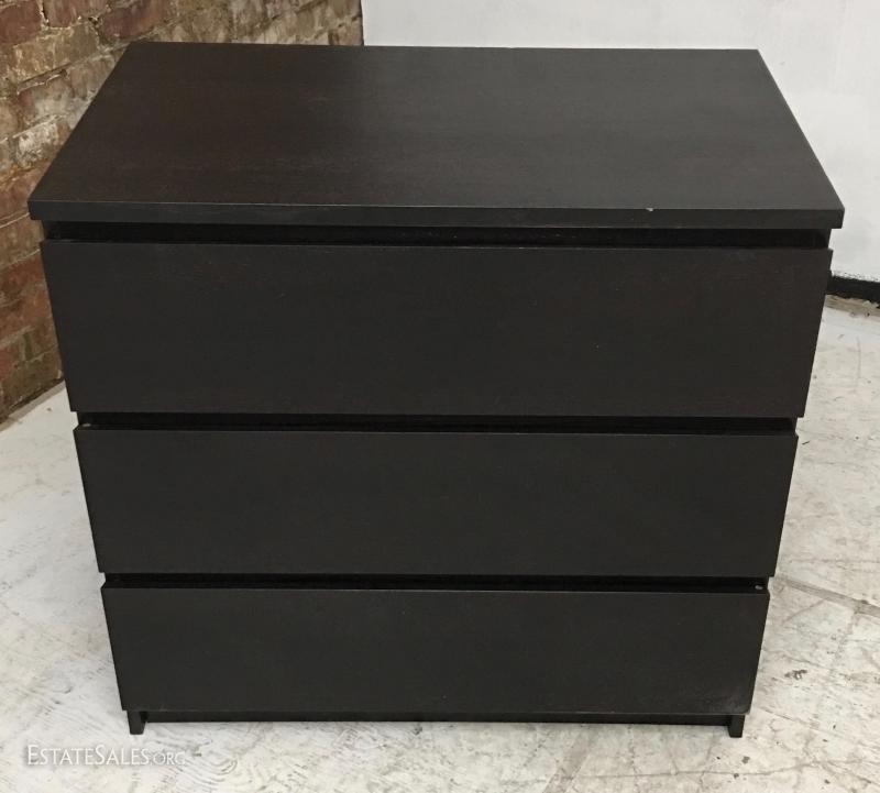 Dark 3 drawer dresser, wood veneer.