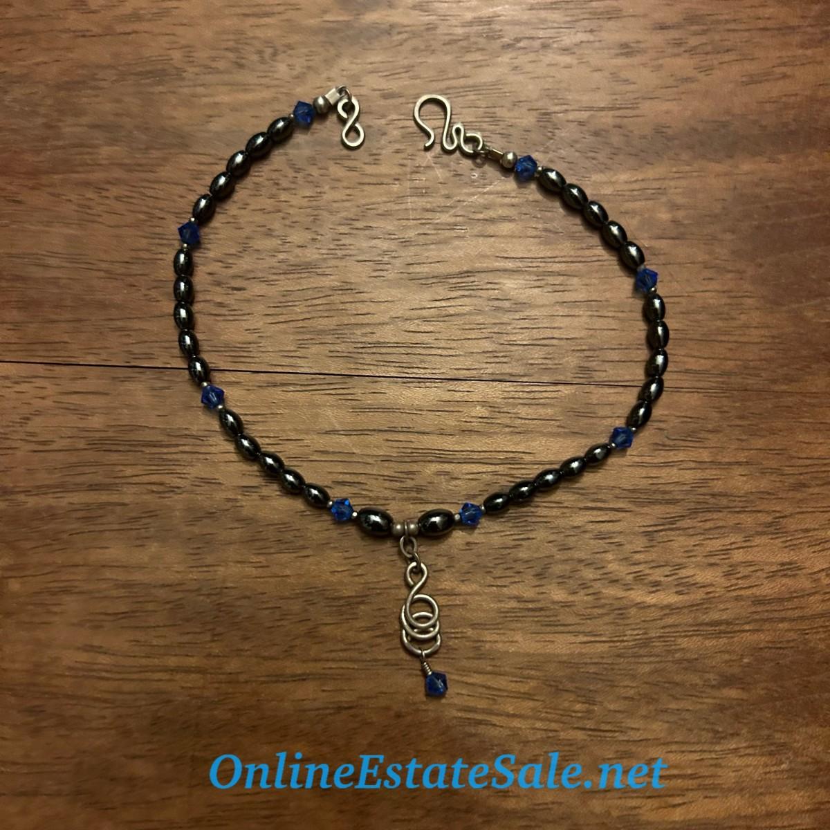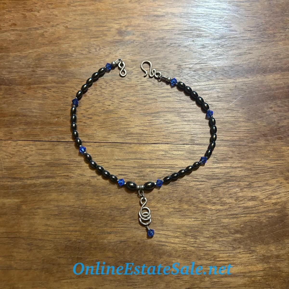 Dark Blue Glass Beaded Bracelet with S-Clasp and Metal Charm Detail