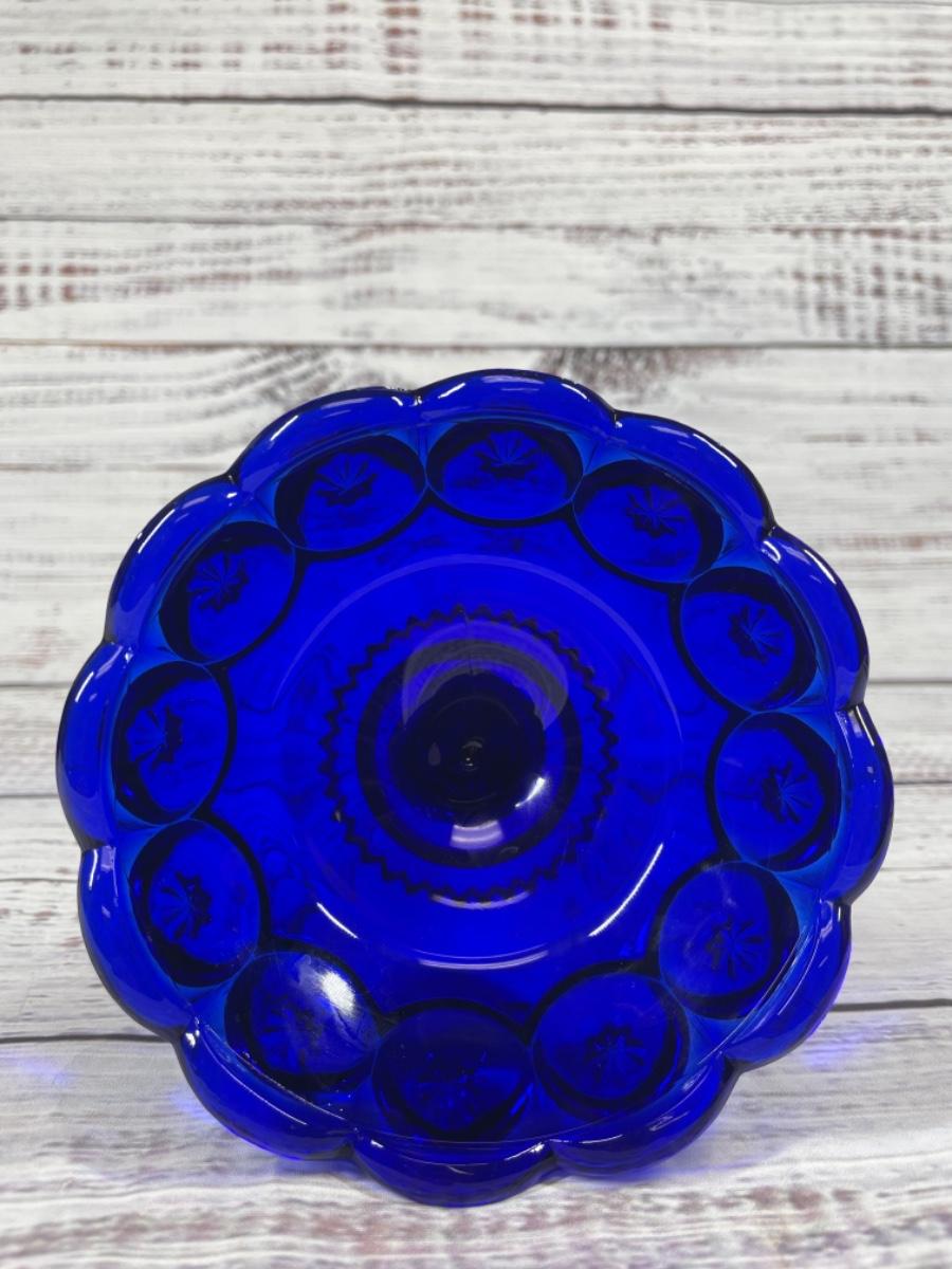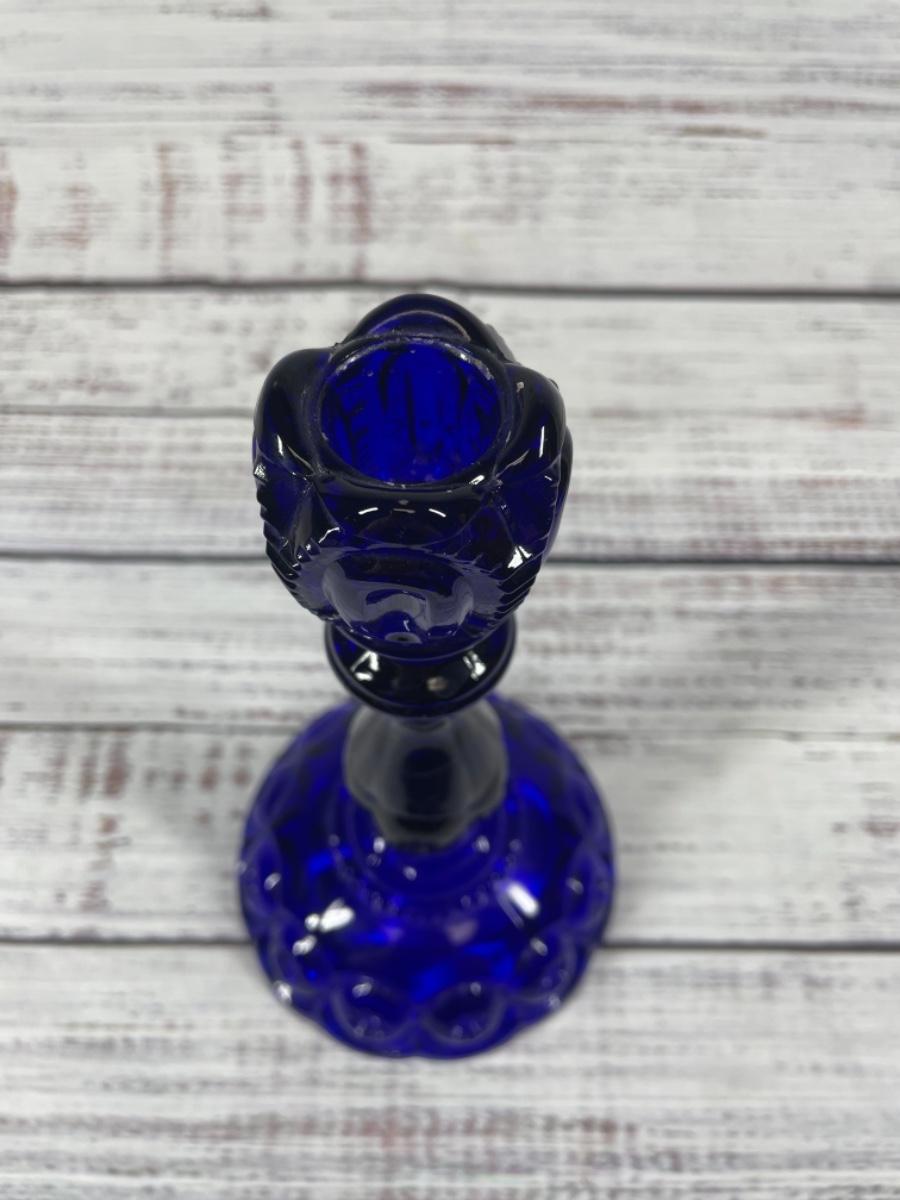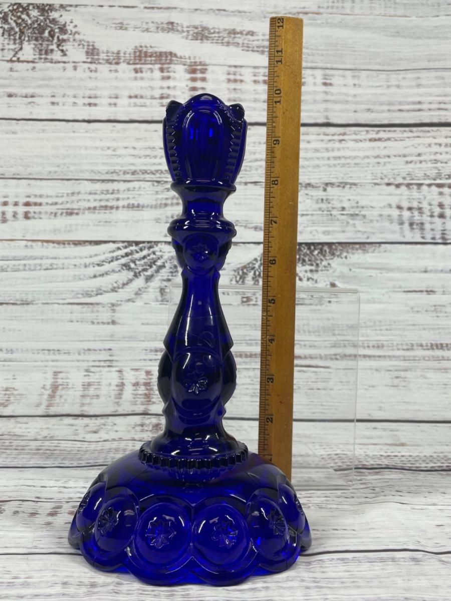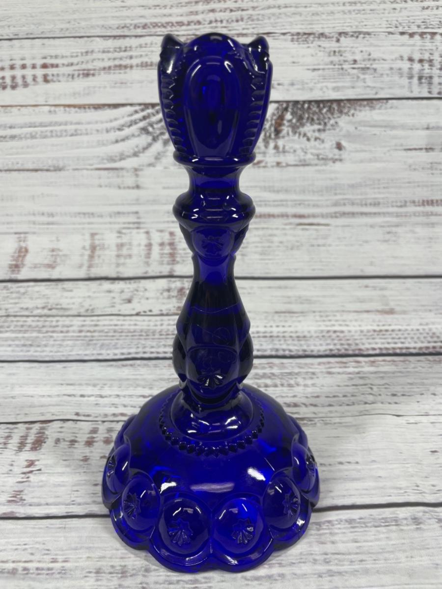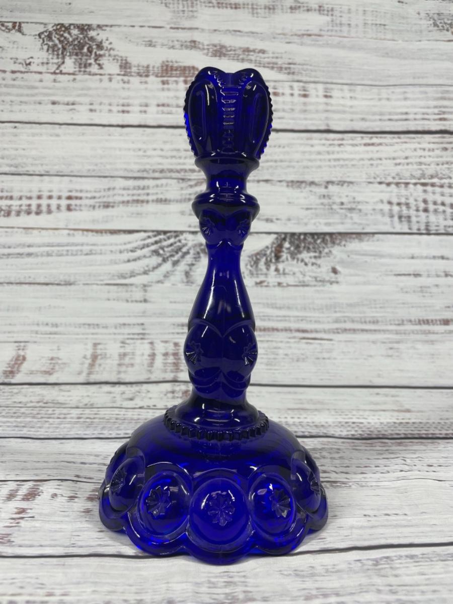 LE Smith Dark Blue Cobalt Glass Moon & Stars Candlestick Holder