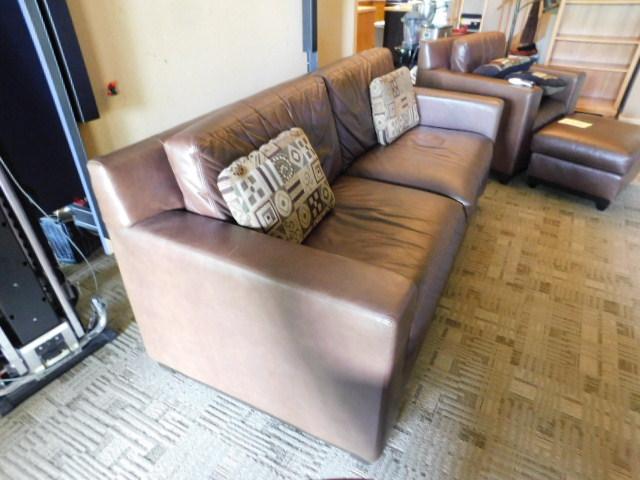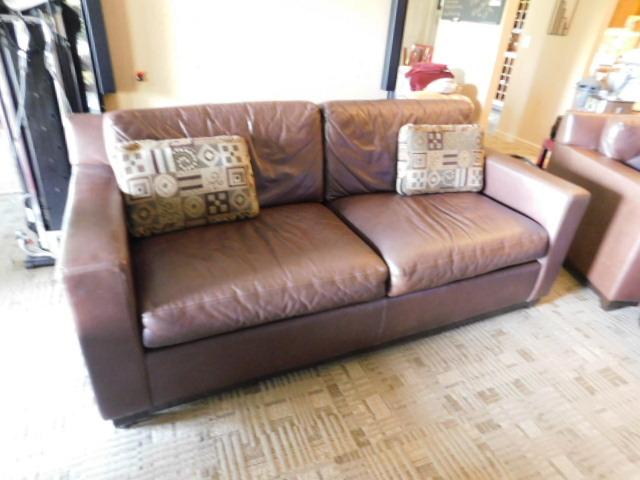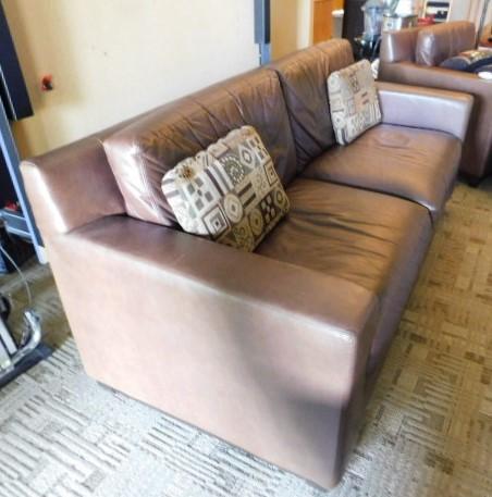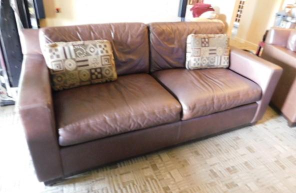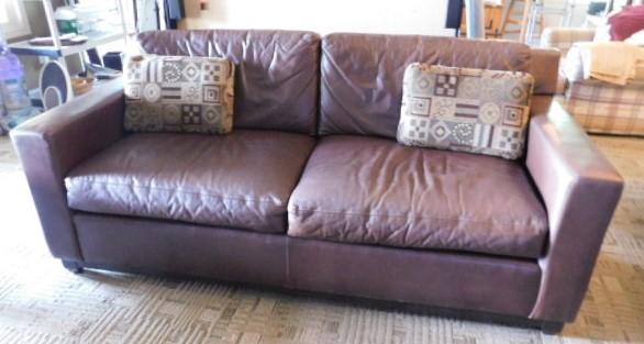 Dark Brown Leather Couch 82". Lower level. Small grassy incline to reach drive. Must bring assistance