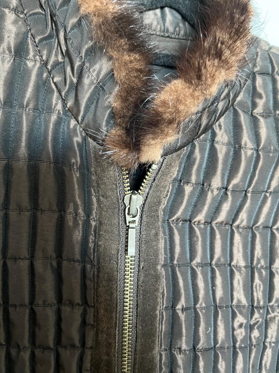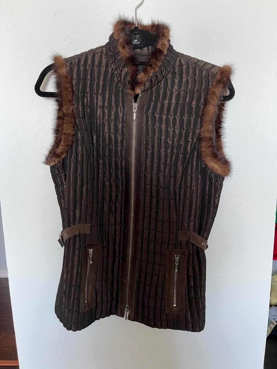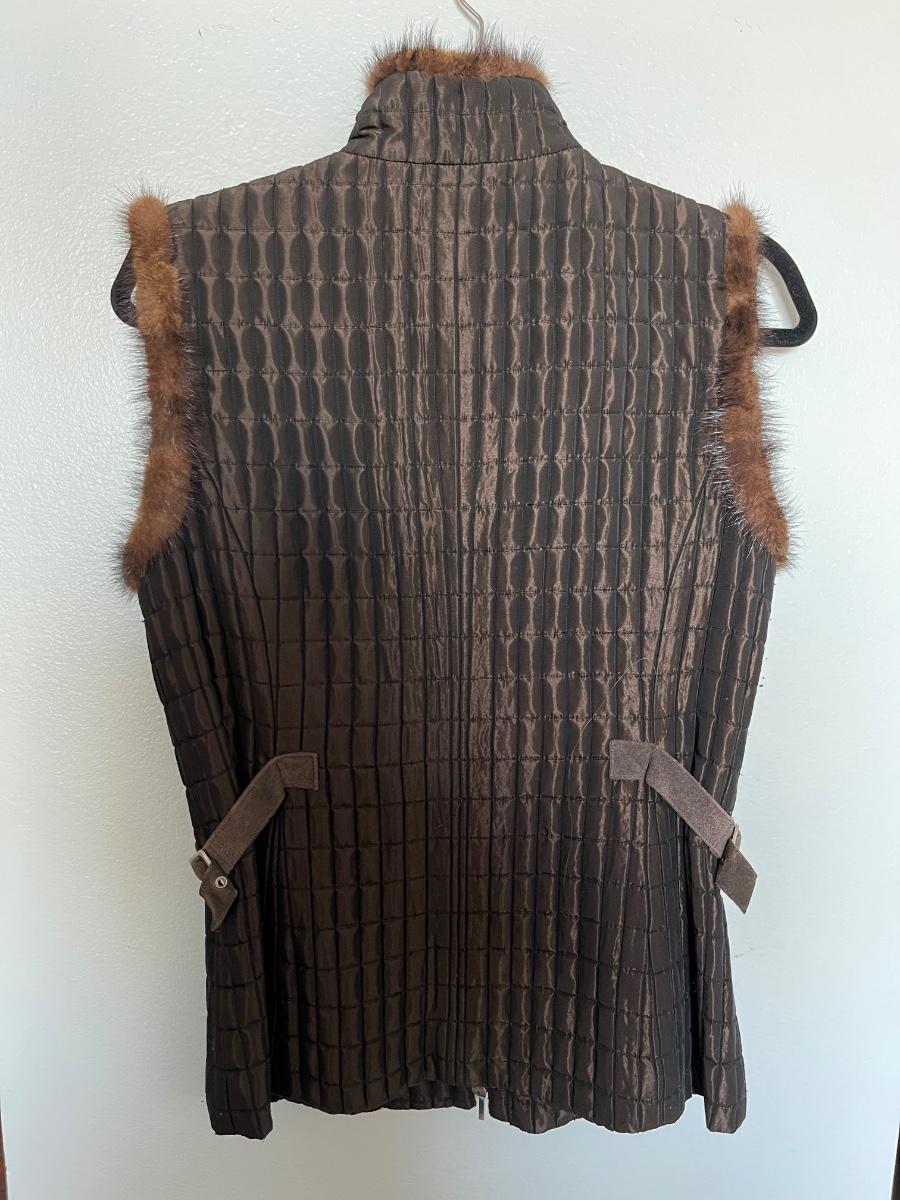 Dark Brown Quilted Vest with Mink and Suede Trim S/M