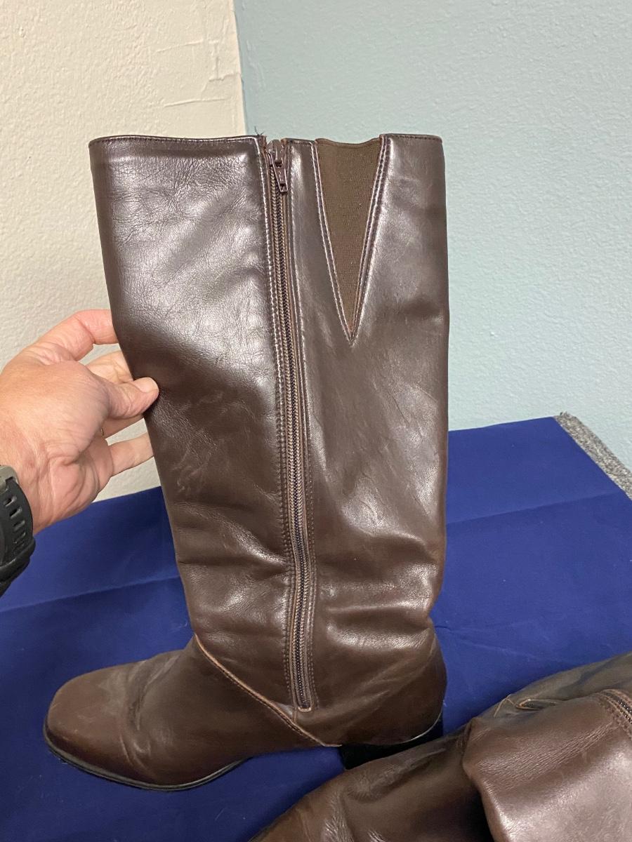 Dark Brown Regence Knee High Zip Up Boots Size 9. In good worn condition.
