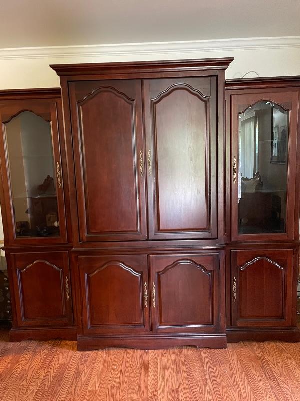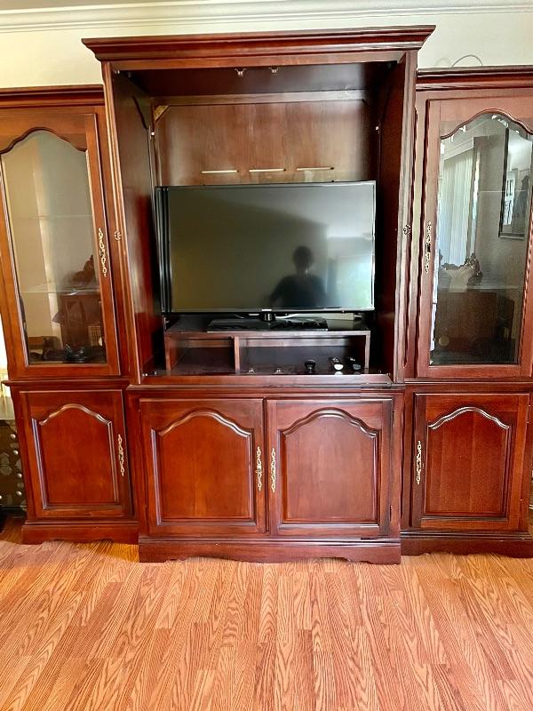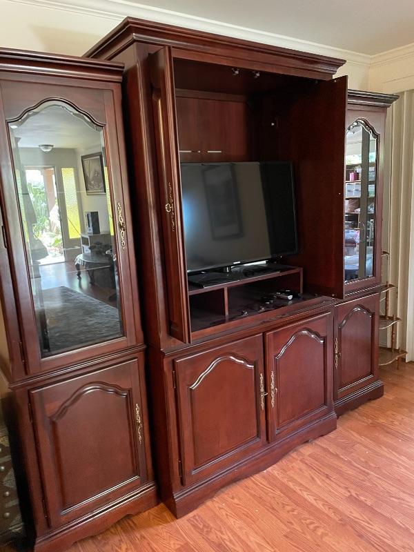 TV hutch with two glass display cases excellent condition