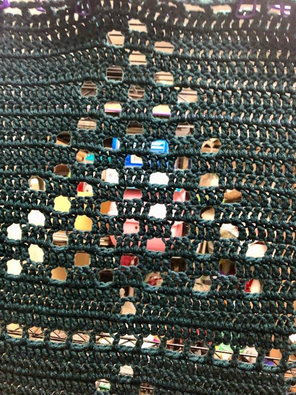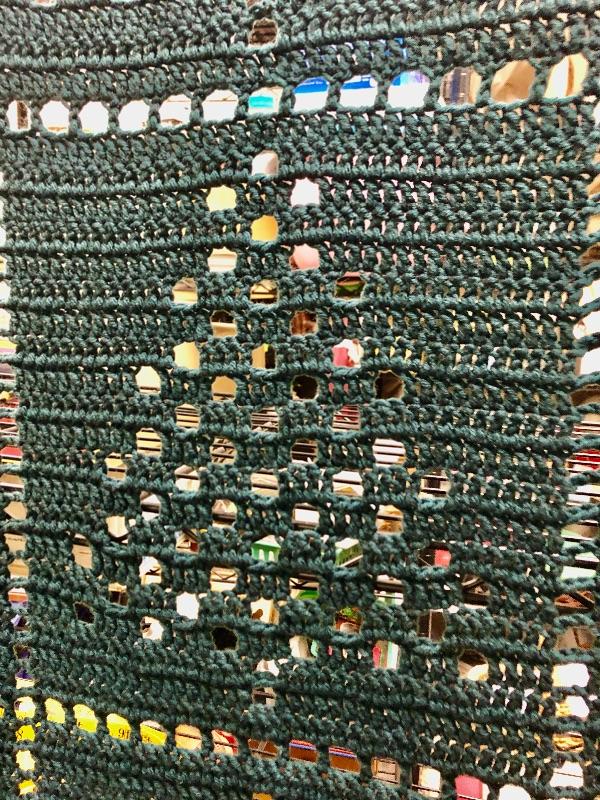 Dark forest green afgan blanket. Has a pine tree design knitted into it. Measures roughly 38"x54". Good Condition.