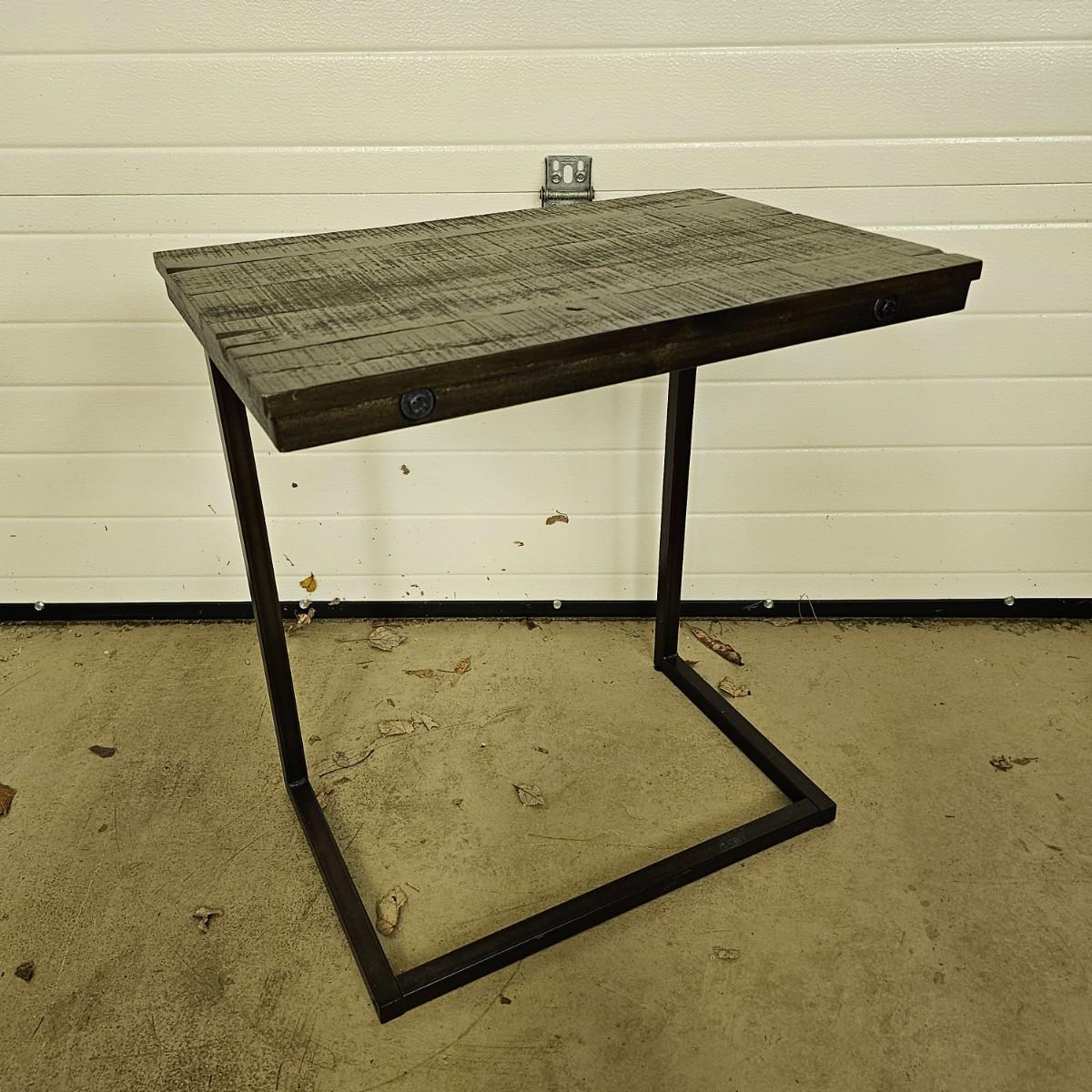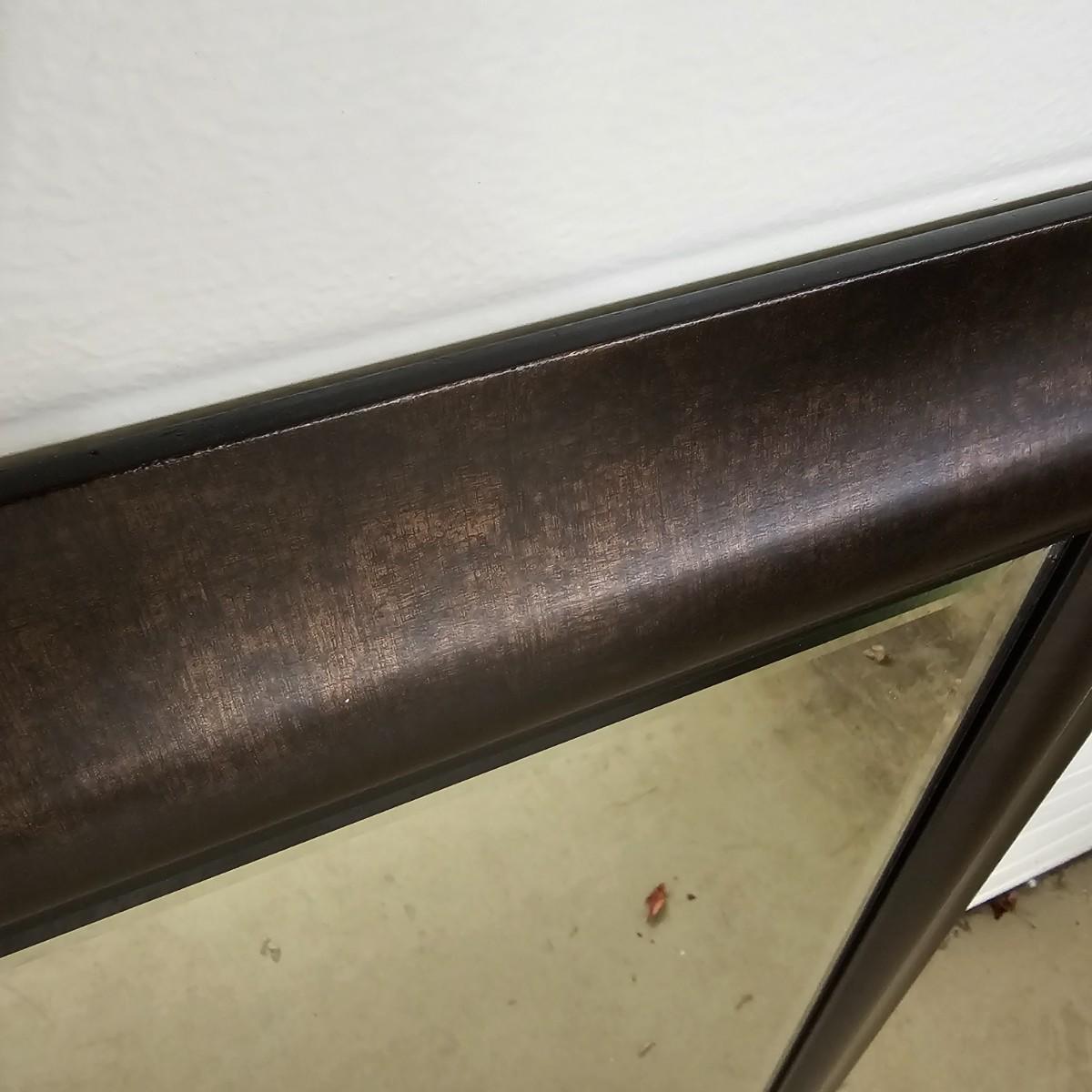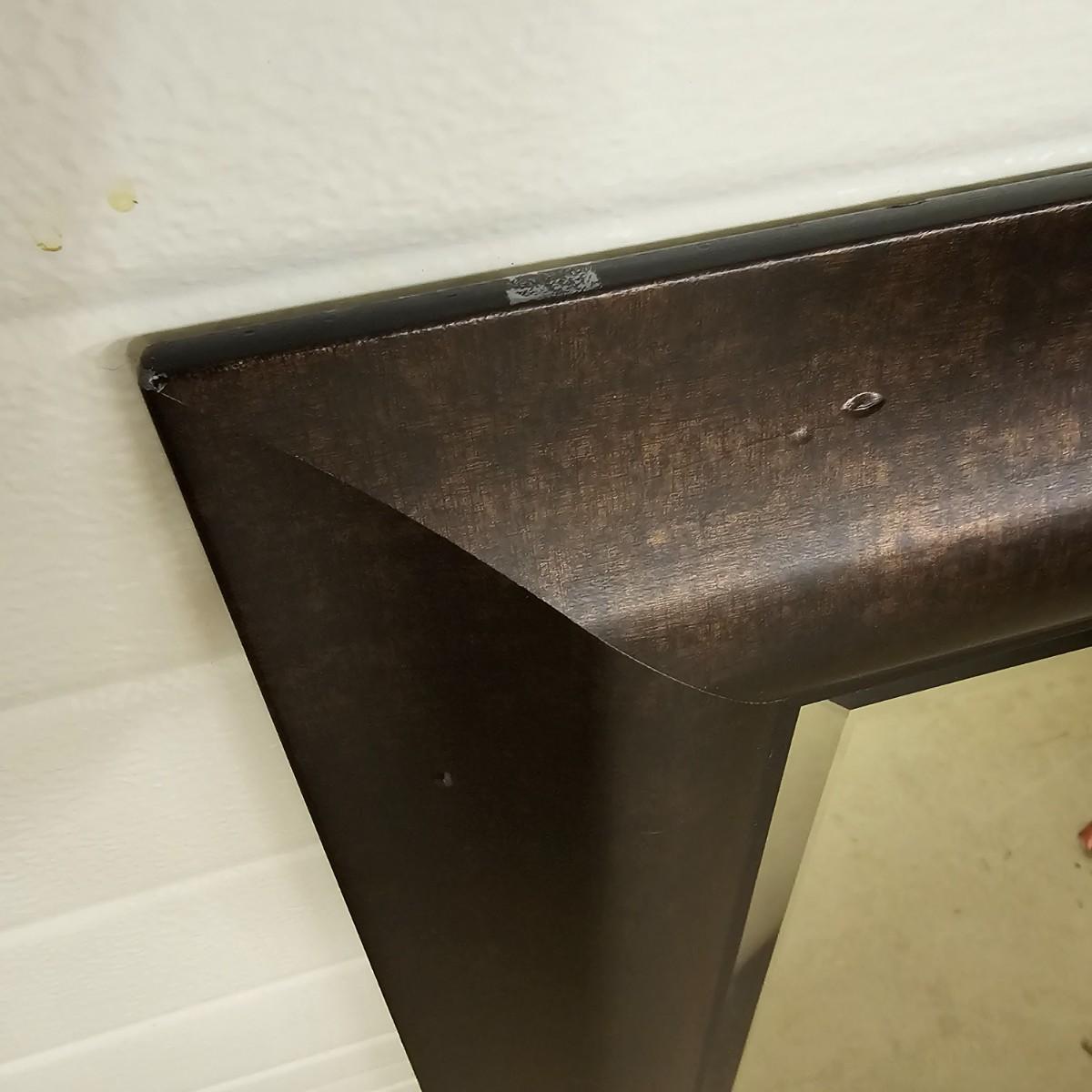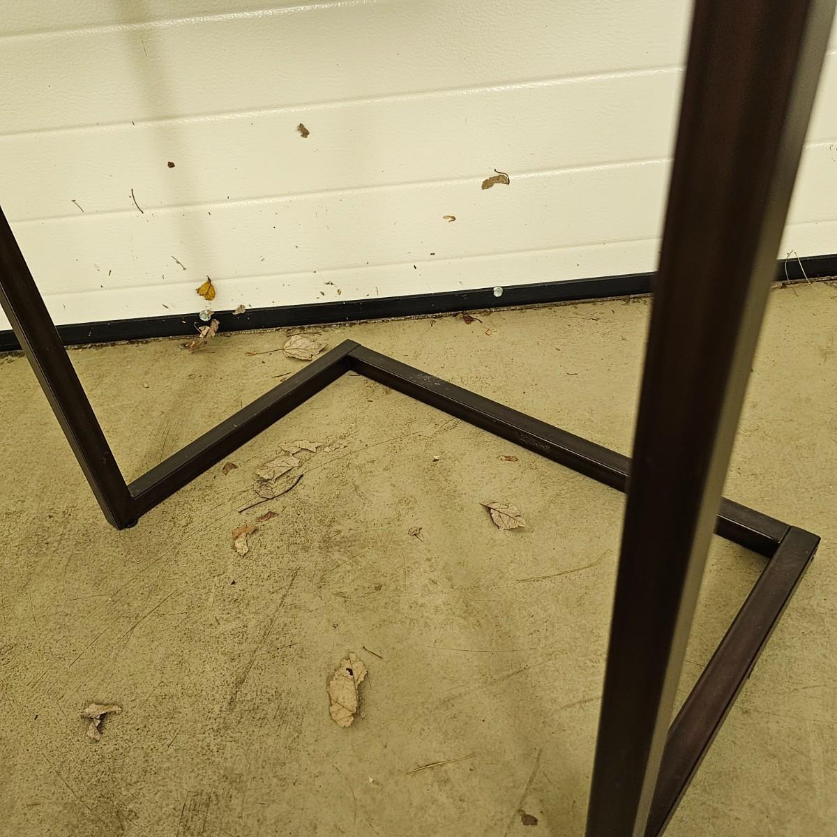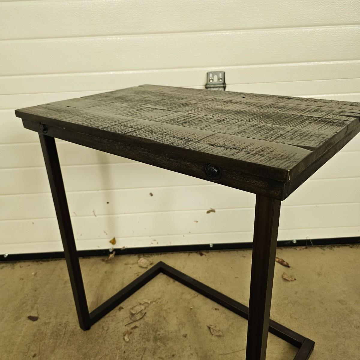 One wall mirror with dark patterned resin frame, a sofa side table made of wood and metal and a rustic made coffee table with pipe legs and a wooden top. Mirror measures 31" x 13", sofa table is 16" x 24" x 25"H and rustic piece is 36" x 16" x 16"H. See photos for details. Local pickup only.