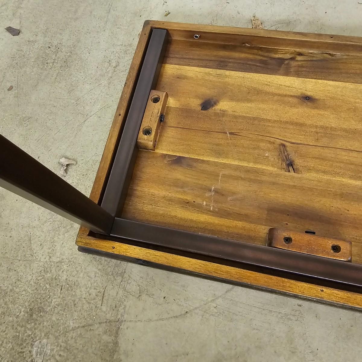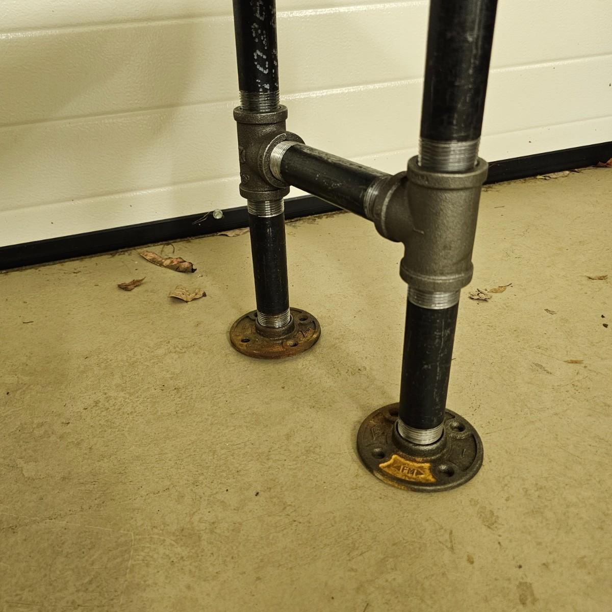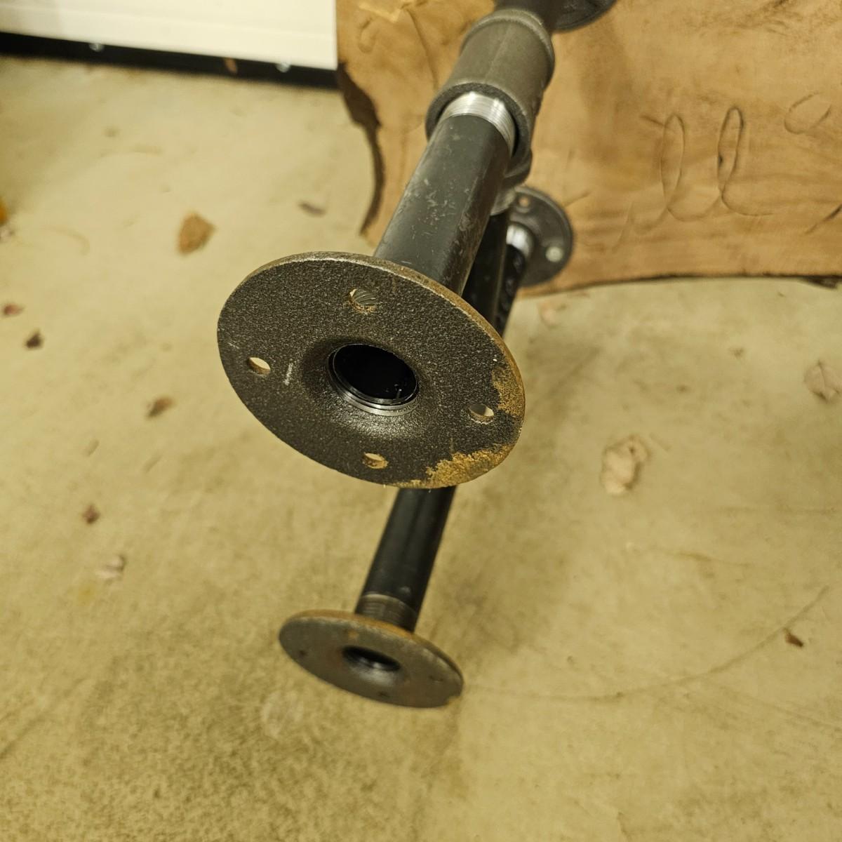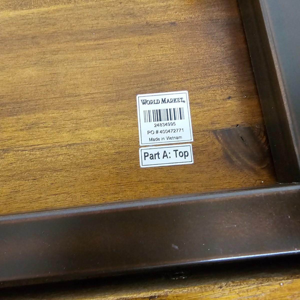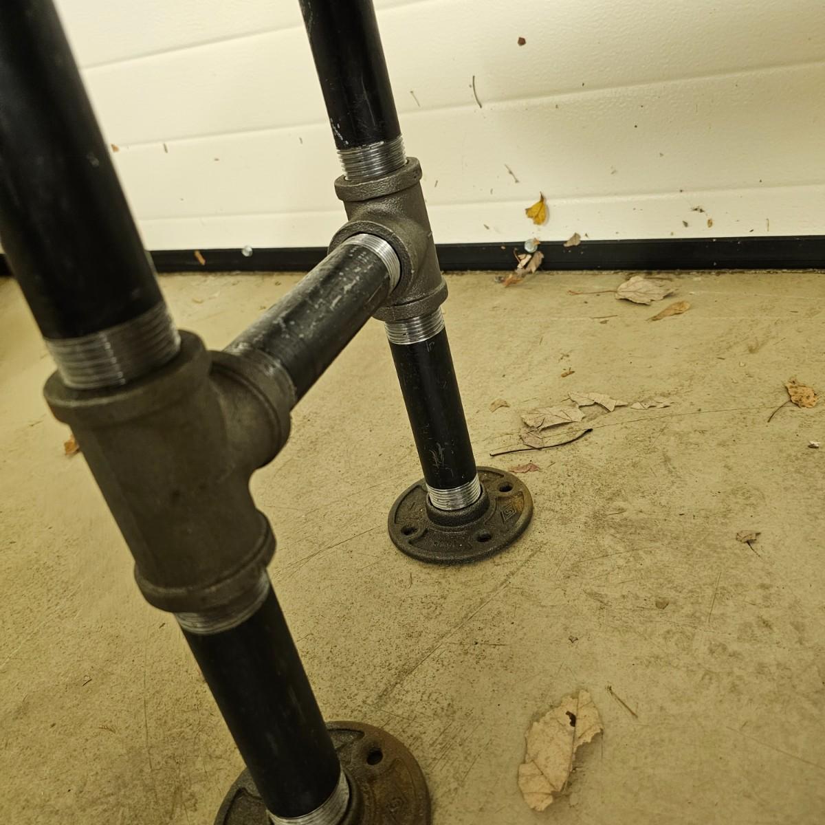 One wall mirror with dark patterned resin frame, a sofa side table made of wood and metal and a rustic made coffee table with pipe legs and a wooden top. Mirror measures 31" x 13", sofa table is 16" x 24" x 25"H and rustic piece is 36" x 16" x 16"H. See photos for details. Local pickup only.