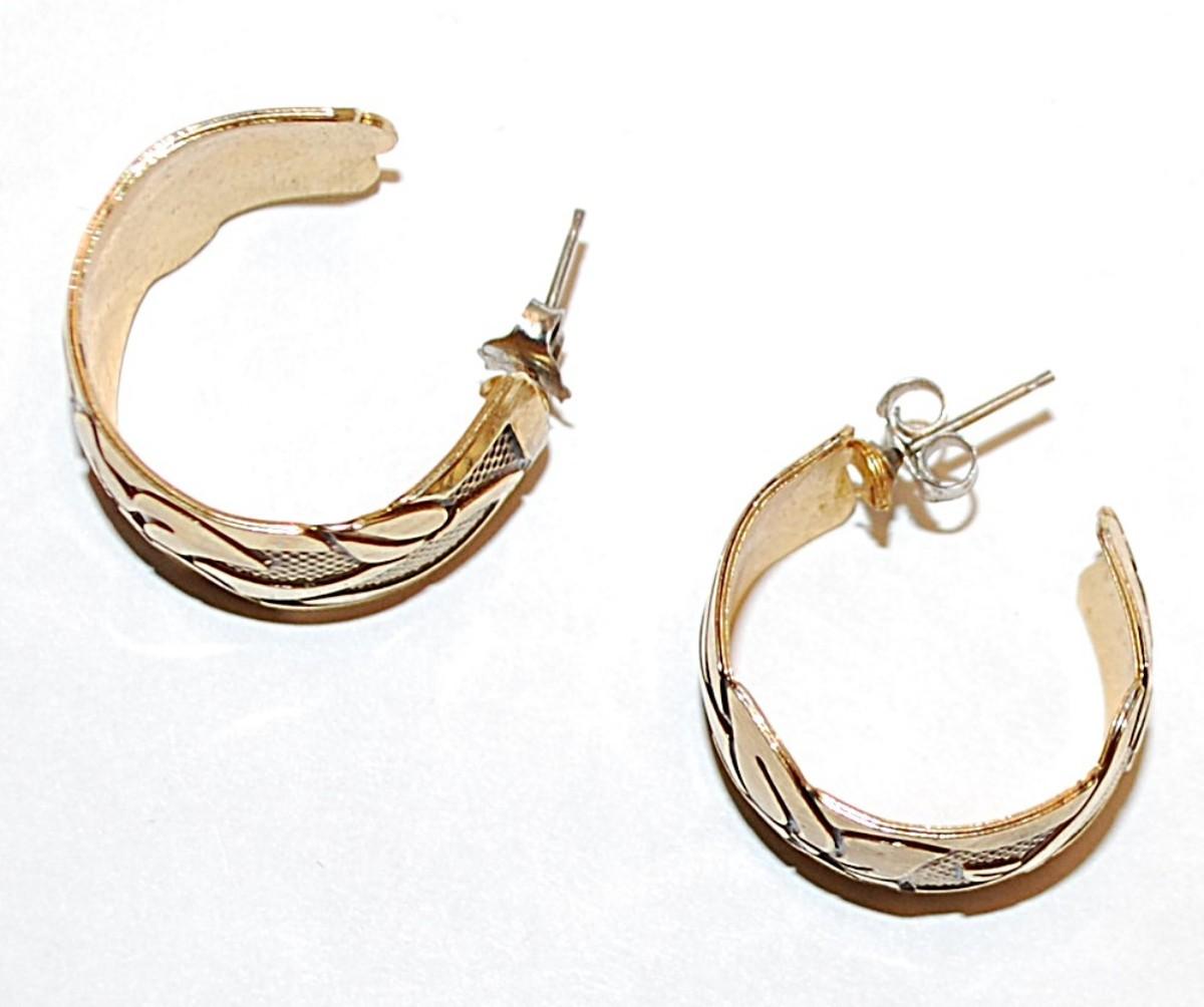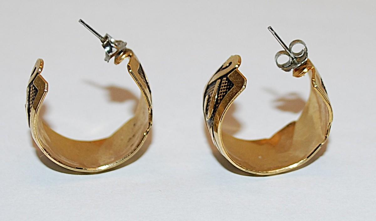 Dark Gold Colored "Engraved" EARRINGS Set with Graphic Design and Stud Post Clasp