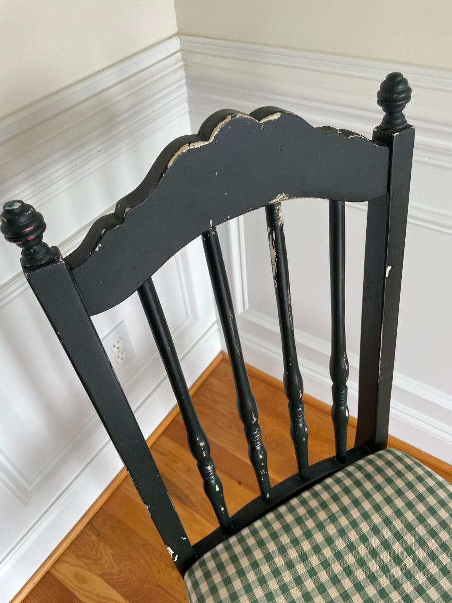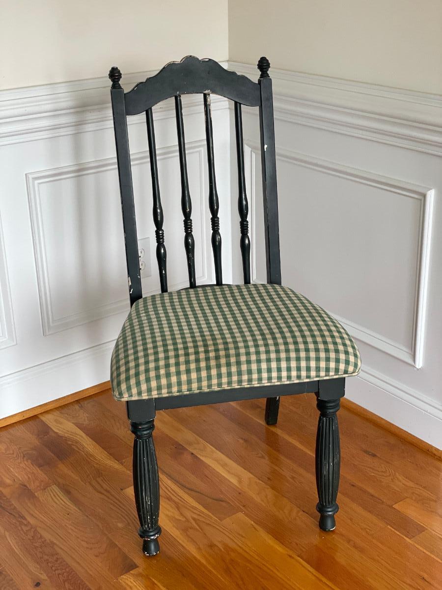 Dark Green Chair with Gingham Cushion