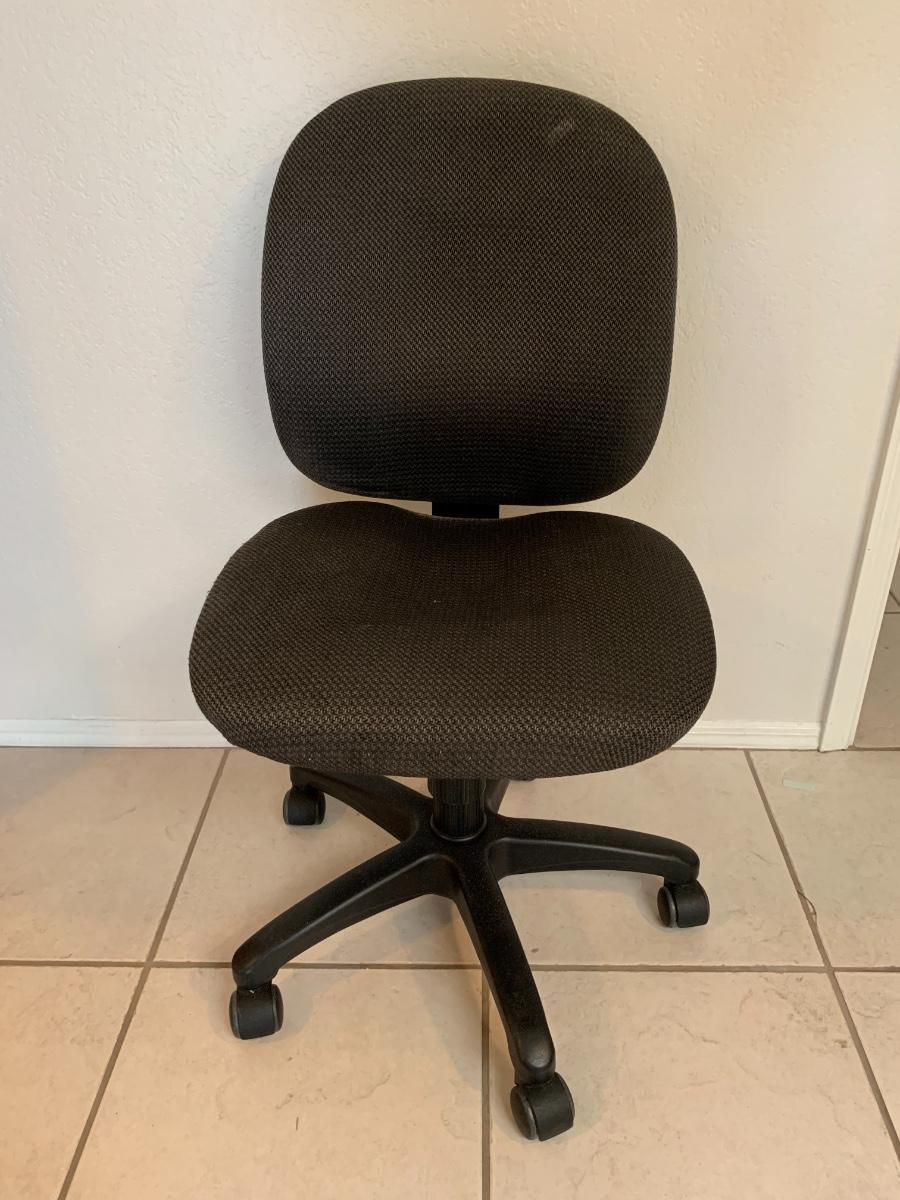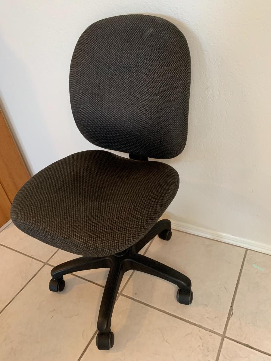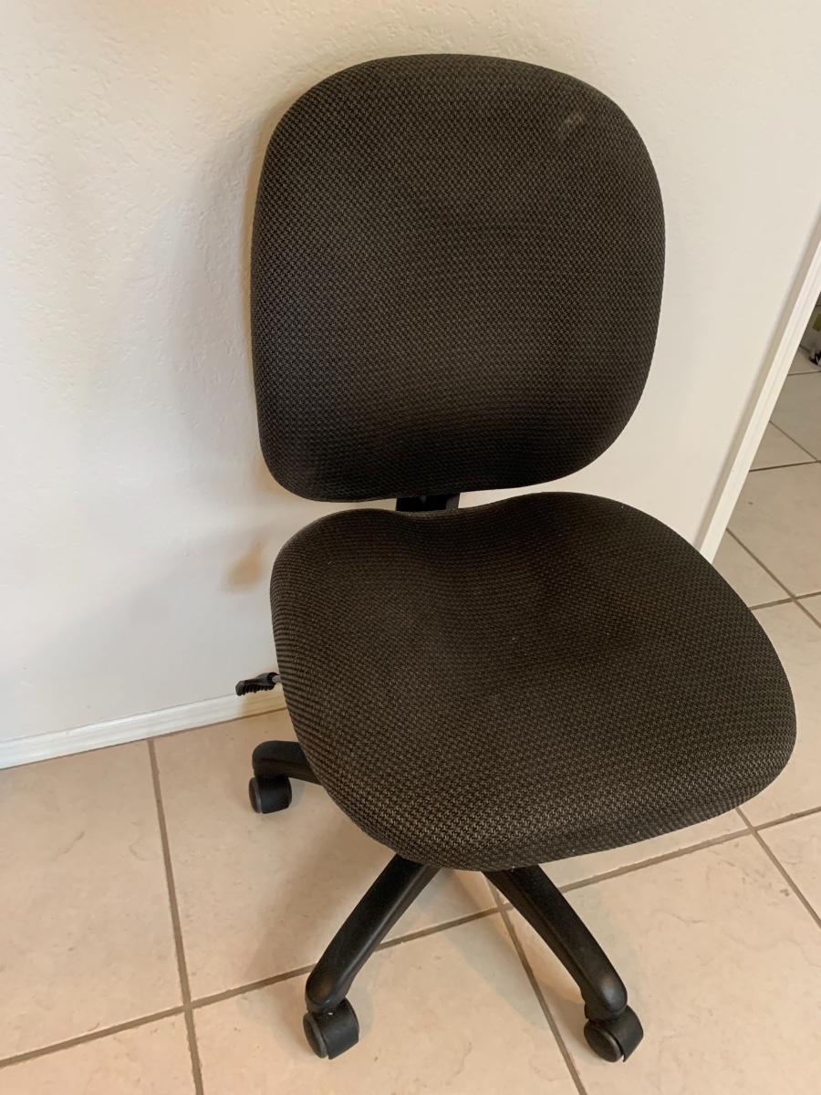 Dark grey adjustable desk chair on wheels, good condition.