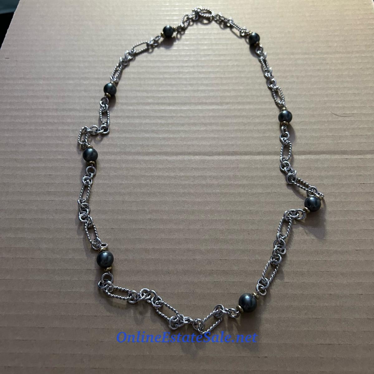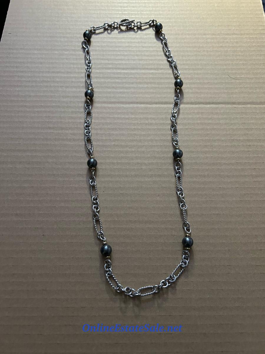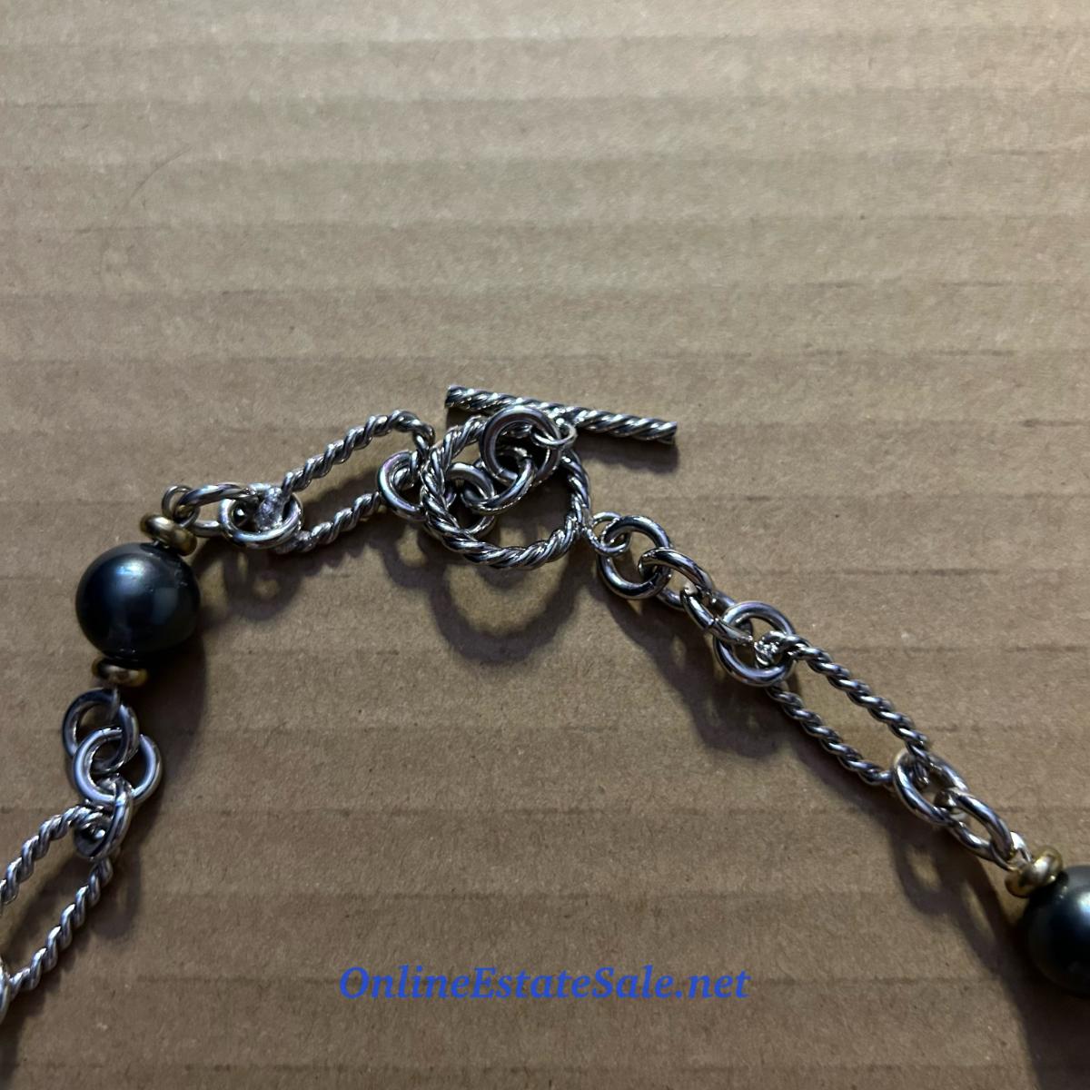 36in Dark Pearl and Silver Colored Chain Necklace with Toggle Clasp