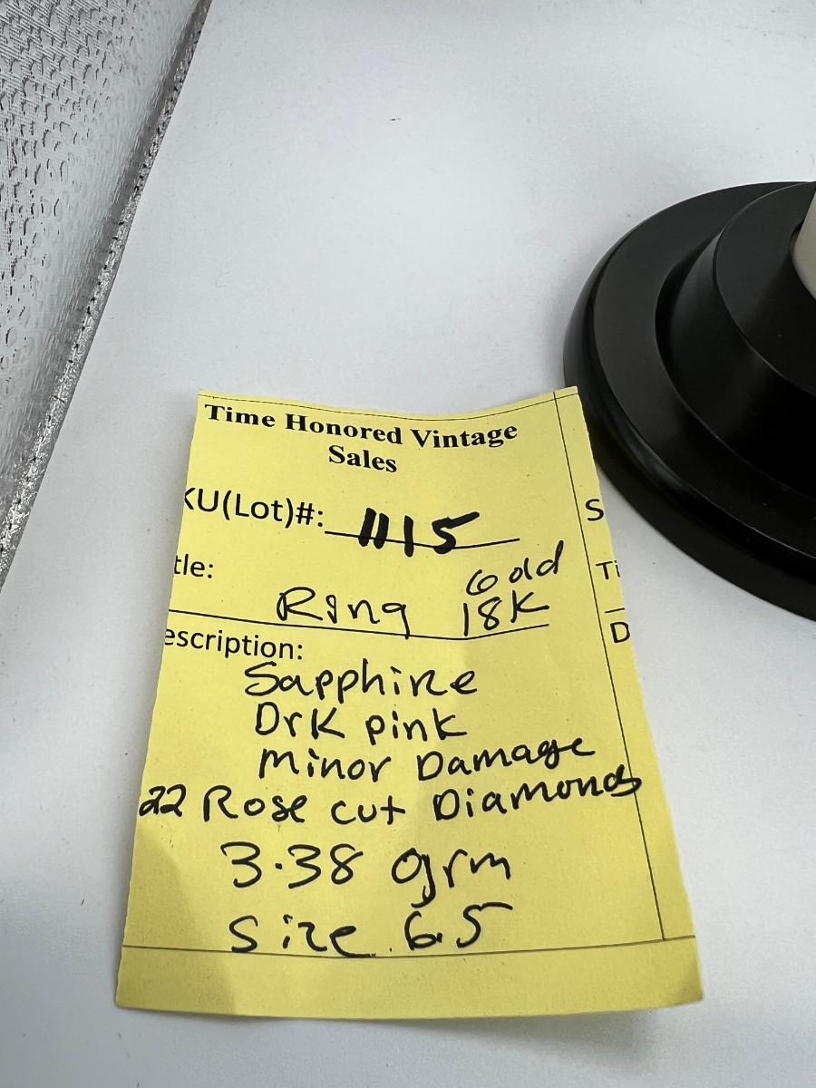 Dark Pink Sapphire Diamond 18K Gold Ring