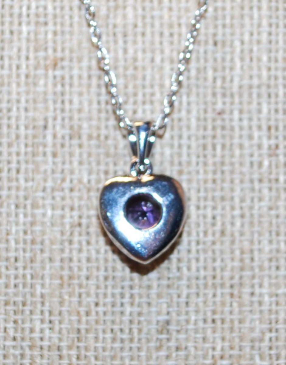 Dark Purple Round Faceted Center Stone & Silver Heart Shaped Setting PENDANT (¾" x ½") on a Silver Tone Necklace Chain 17" L