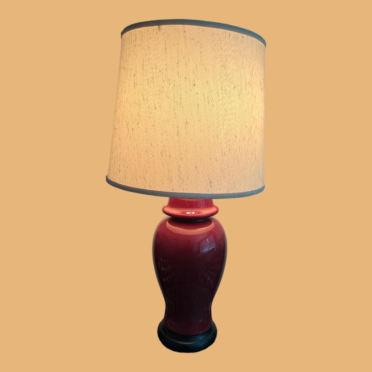 DARK RED CERAMIC LAMP WITH SHADE