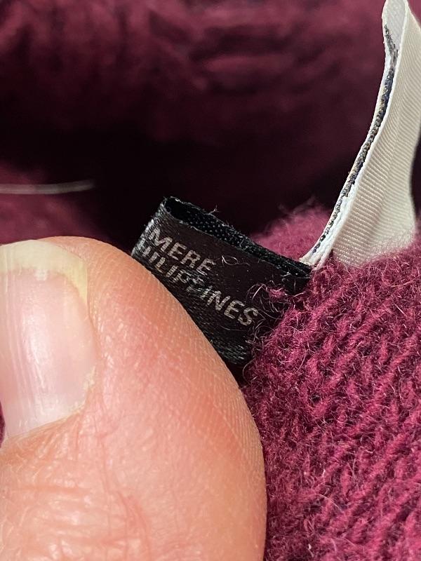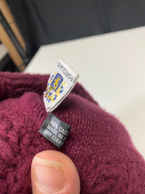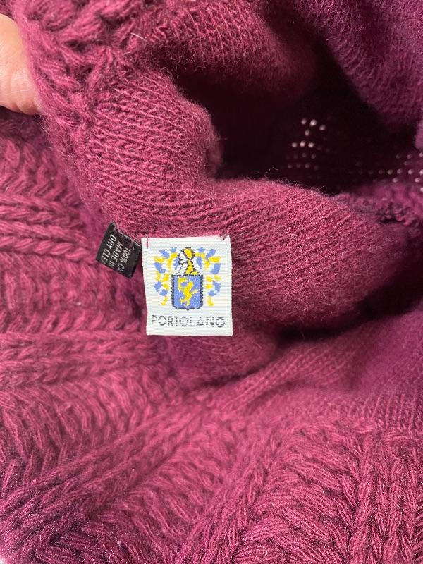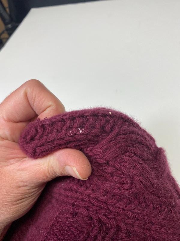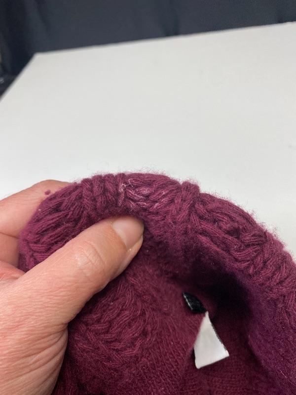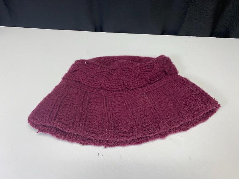Cashmere knit hat by Portolano. Dark red maroon color. Very soft. There is a couple spots on it, look to be on surface, probably come off with a little cleaning.