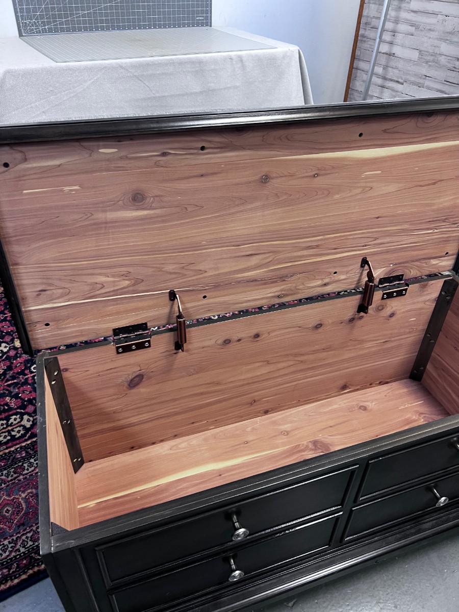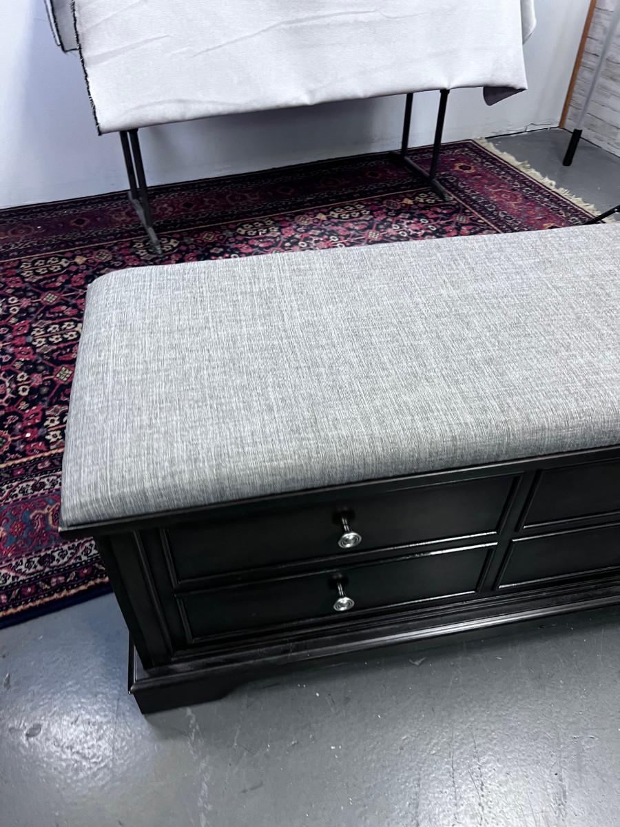 Good Condition. USABLE! 18" x 45" x 43" with Gray Padded Seat.