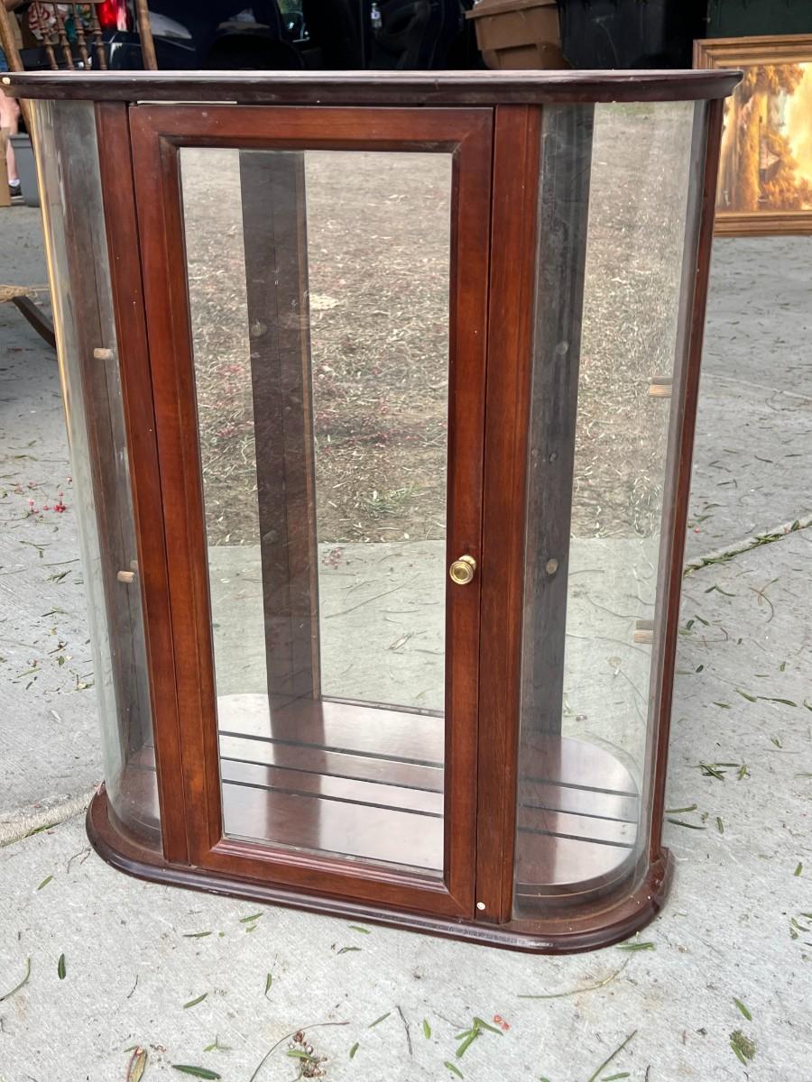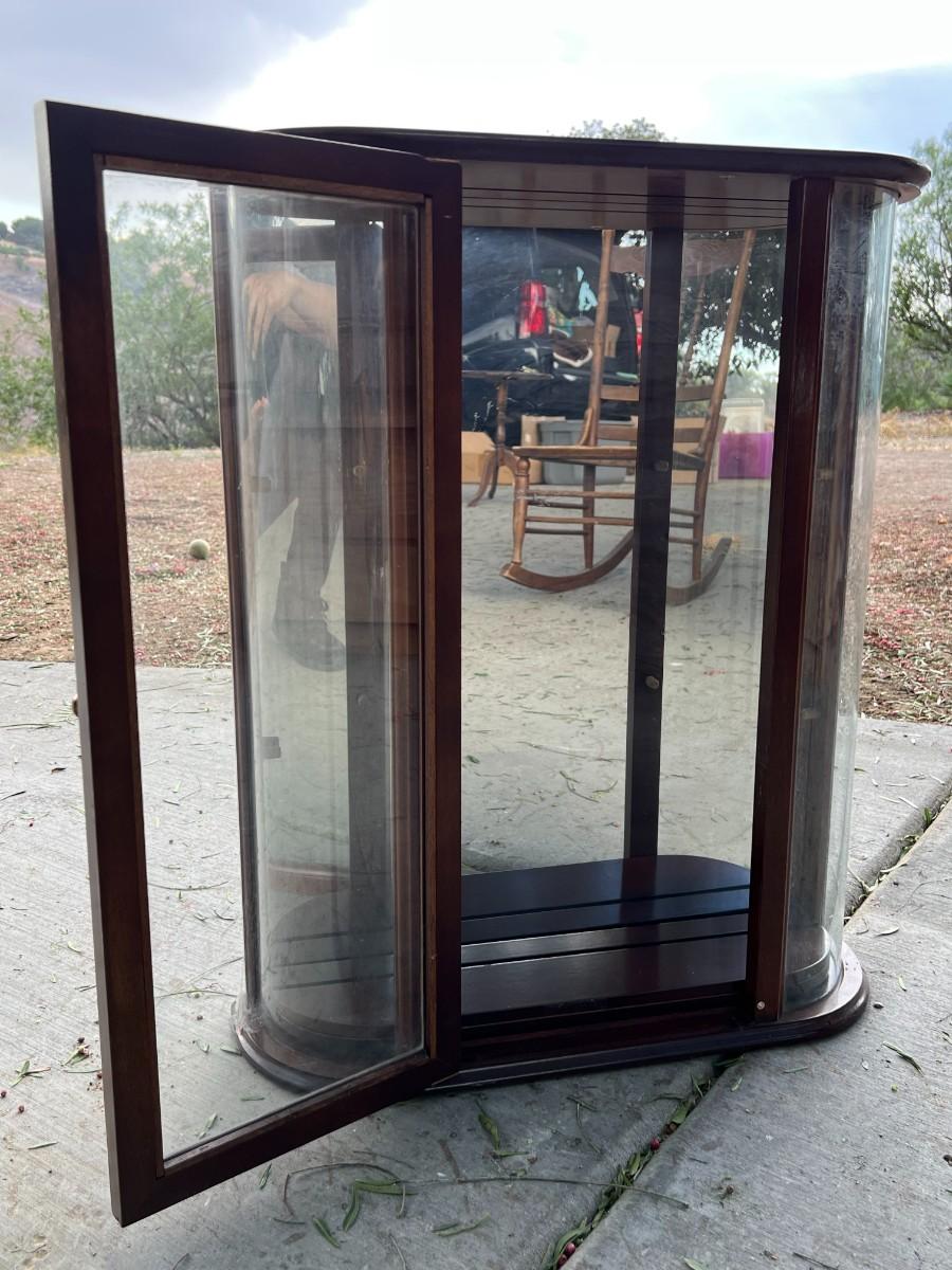 Dark Wood Curio Display Hanging Cabinet - IN LA HABRA HEIGHTS