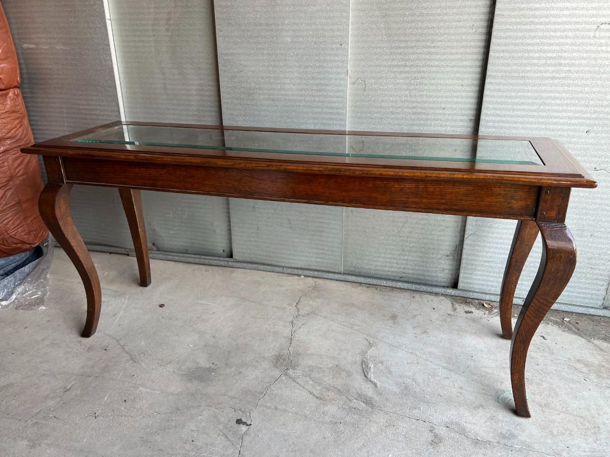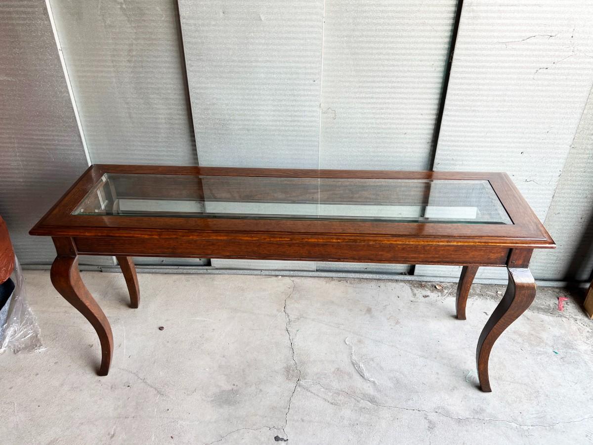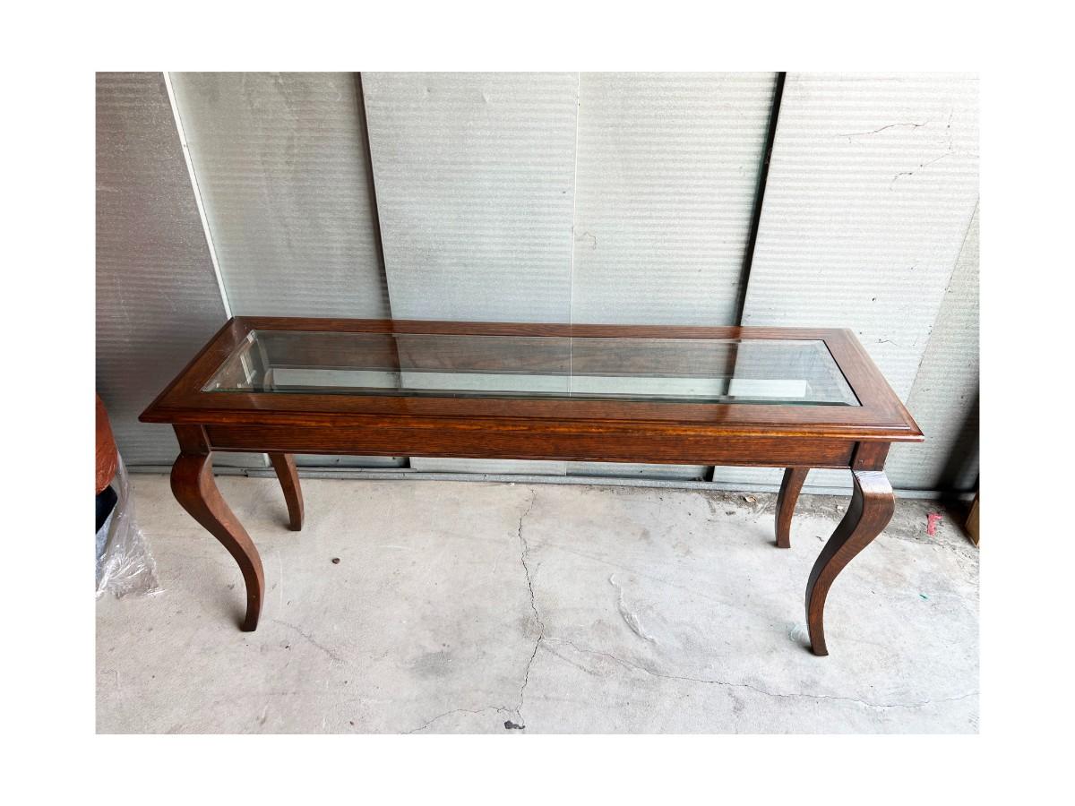 Dark Wood Entry Console Table with Glass Top