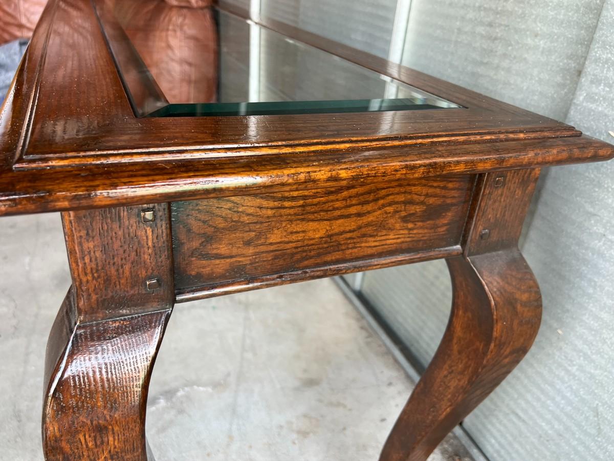 There is no significant damage to the table or glass and is in overall good useable or displayable condition. Check pictures for more details and for sizing.