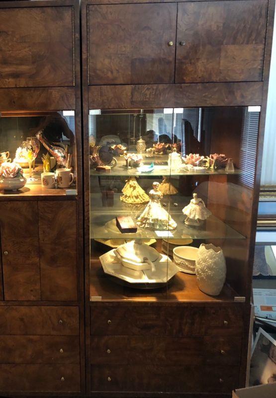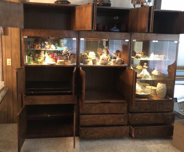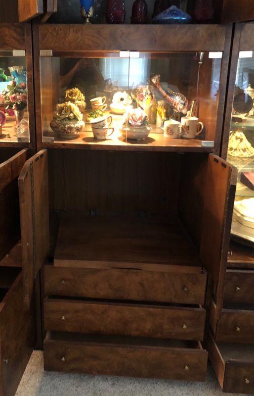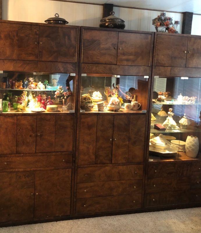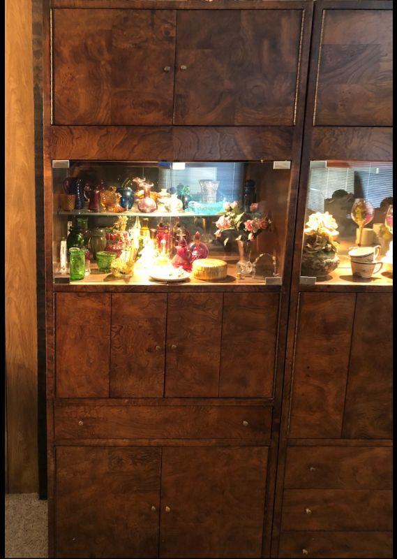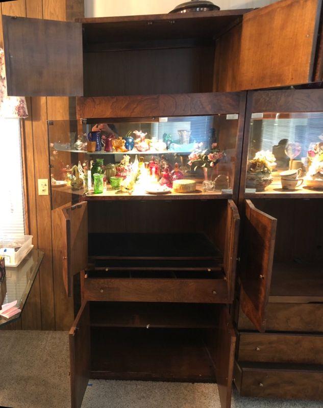 3 Matching Units (19x32x80"each)- Dark Wood / Glass Doors / Lighted Curio Cabinets / Entertainment / Office compartments
