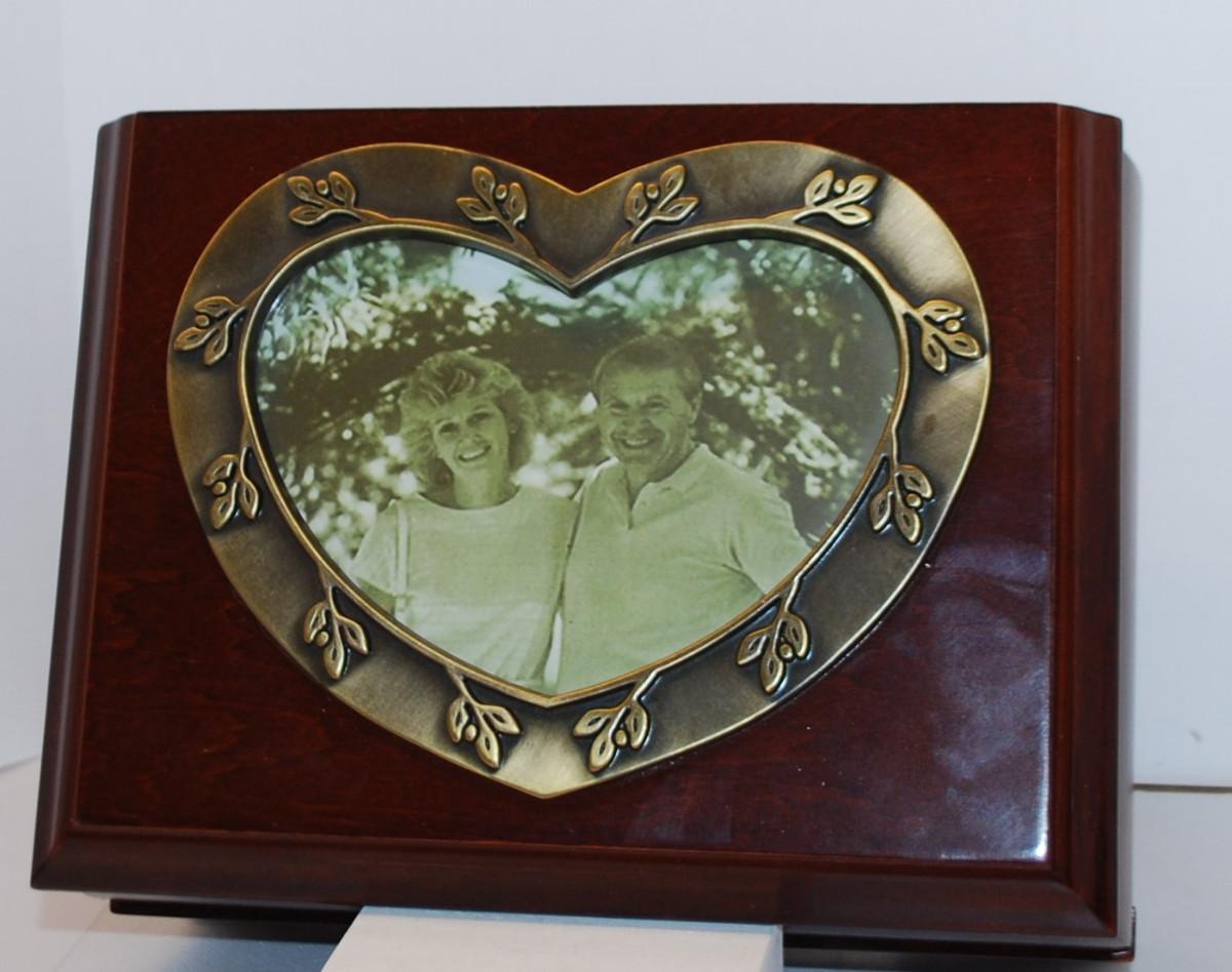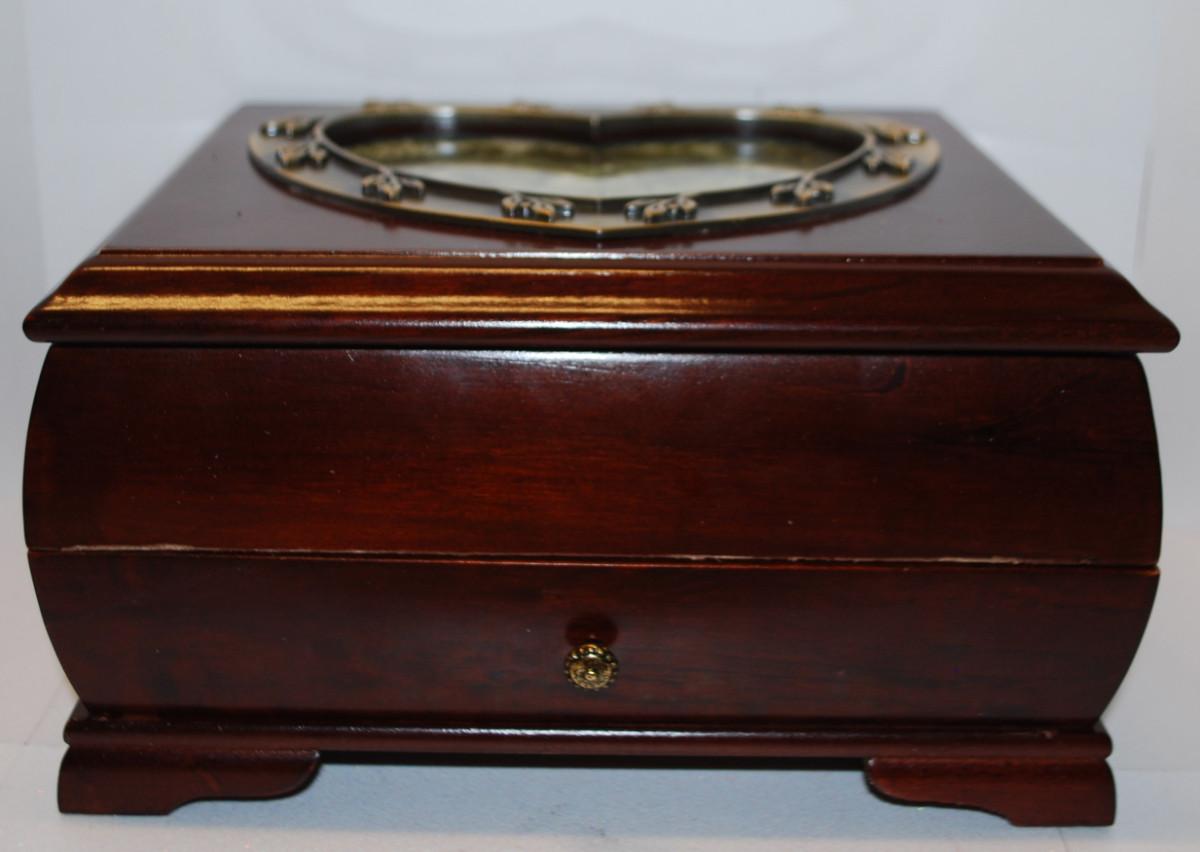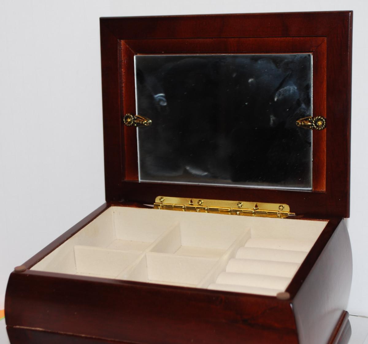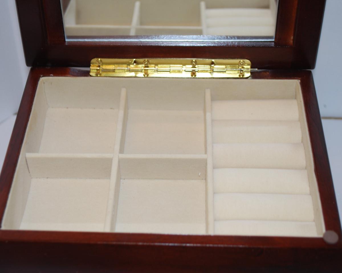 Dark Wood Jewelry Box with Mirror 8" x 6" x 5"