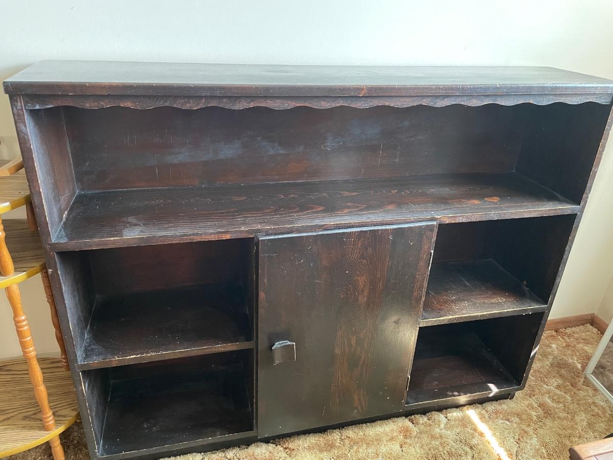 Dark wood shelving unit