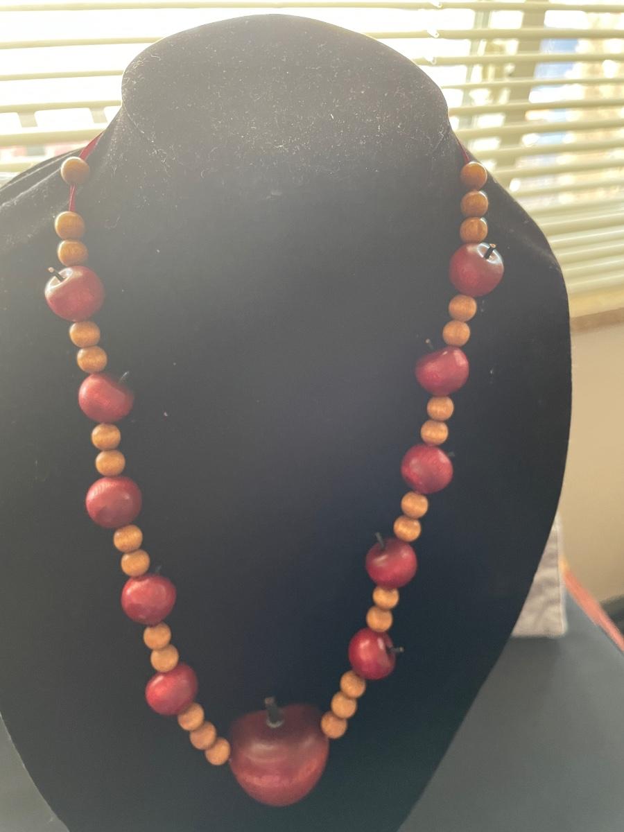 APPLE NECKLACE WOODEN BEADS