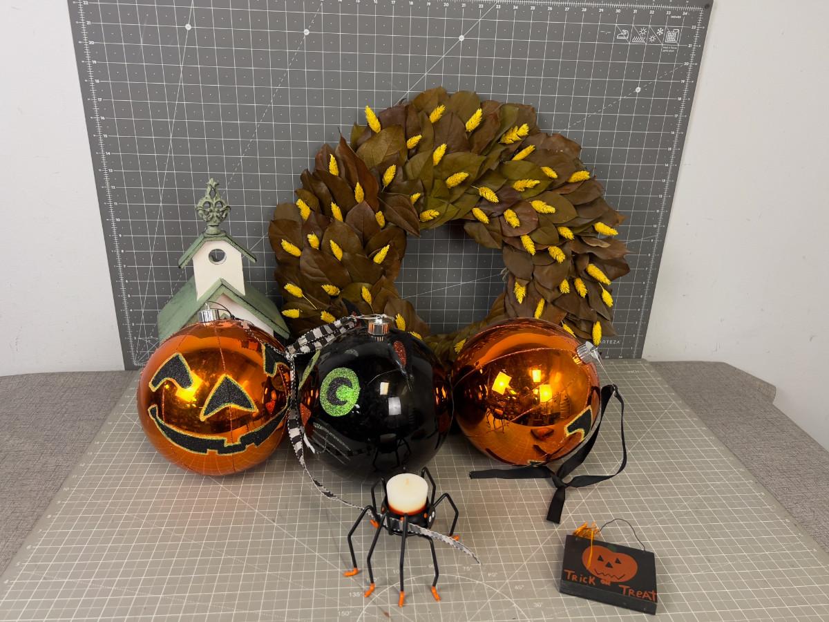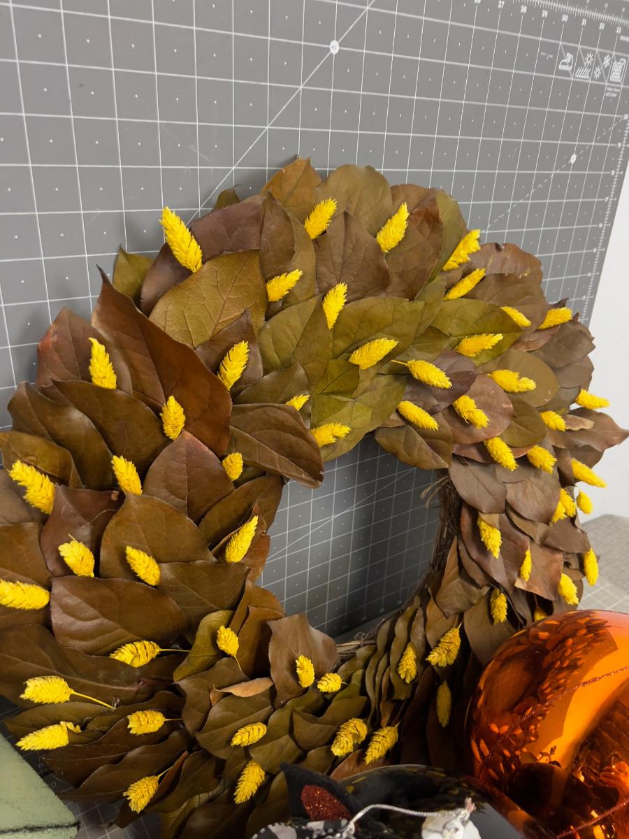 Darling Fall-ish Décor': Leaf Wreath, Pumpkins, Cats and Spiders