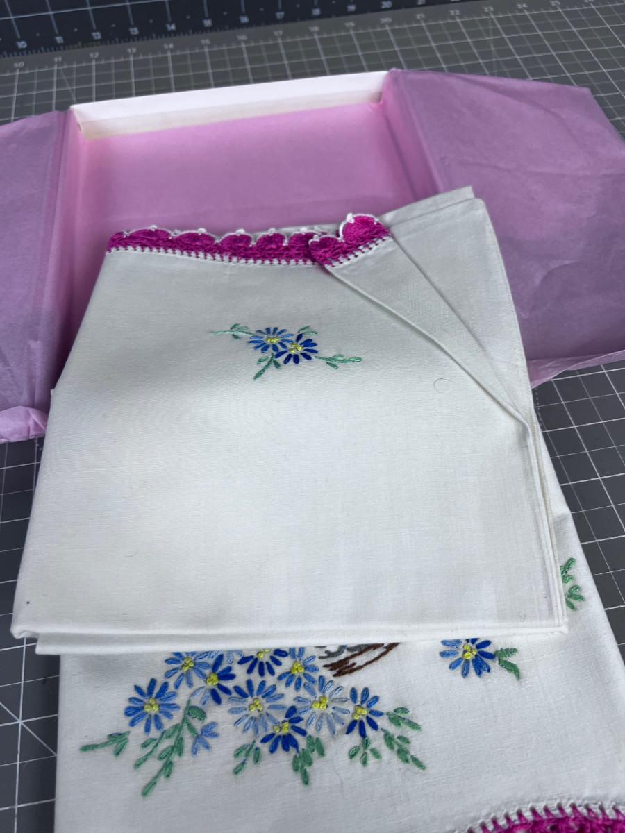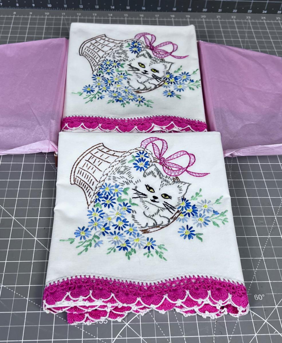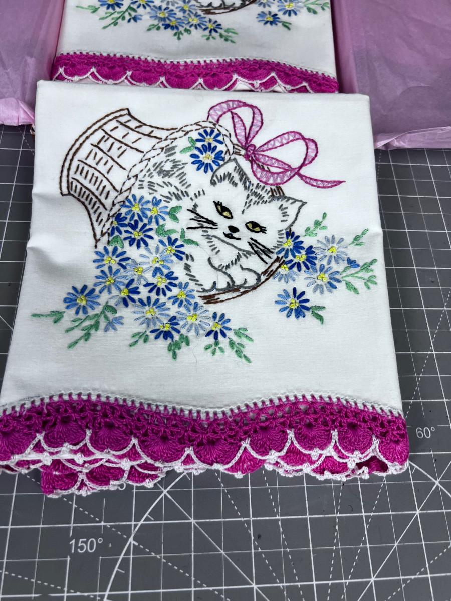 Darling Never Used Hand Made Embroider CATS in a Basket