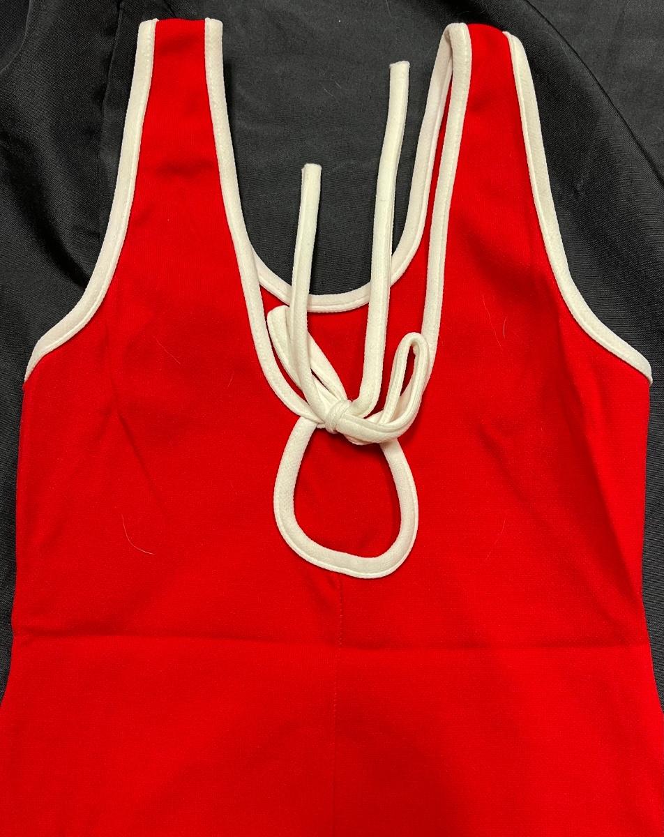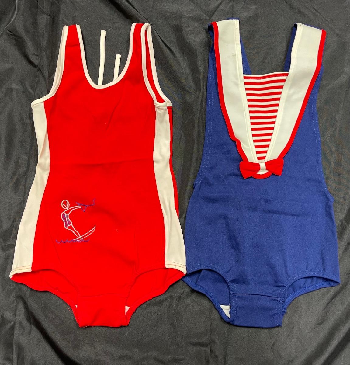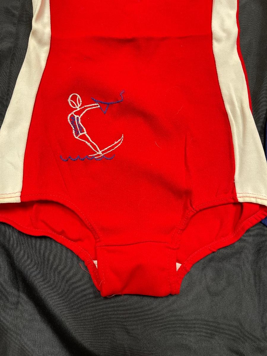 Darling Retro Red Swimsuit one-piece, Water skier Embroidered Design Sailor style vintage