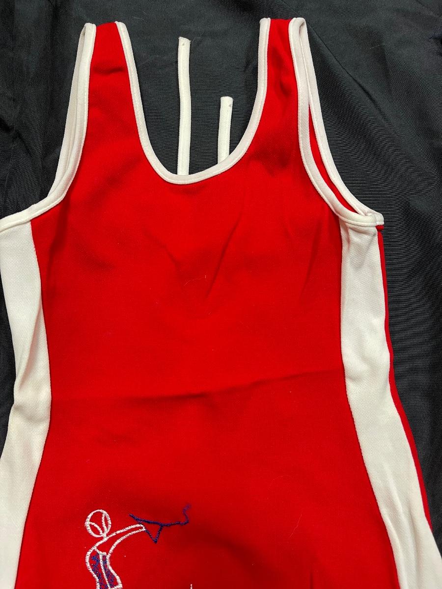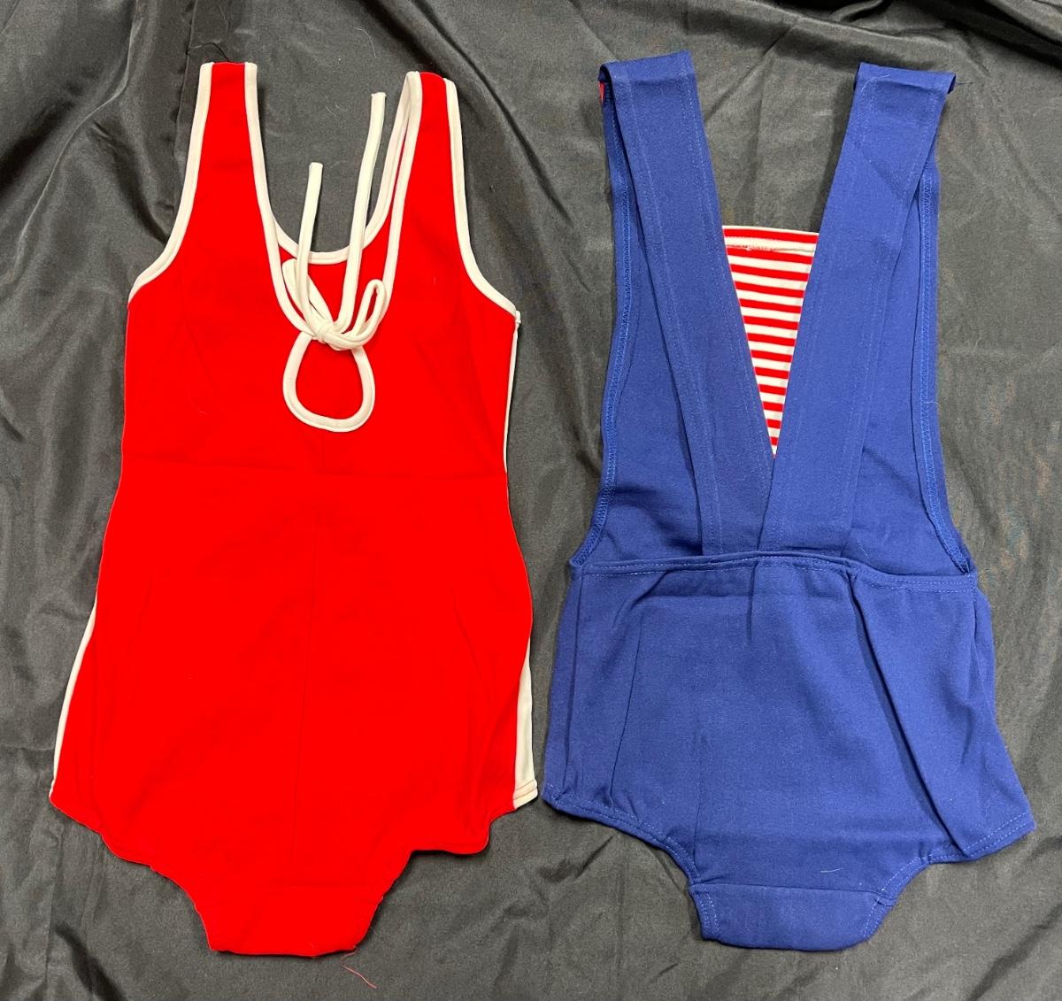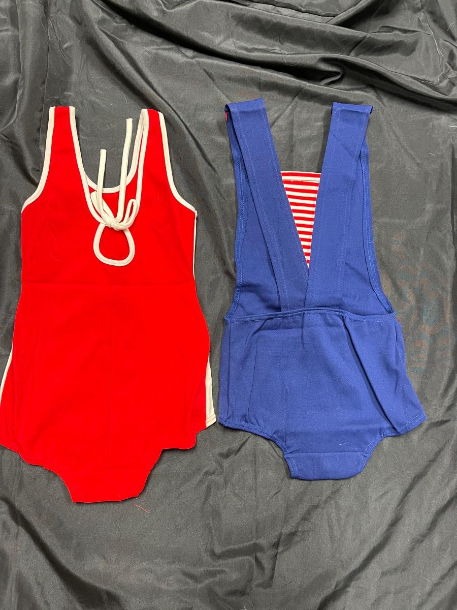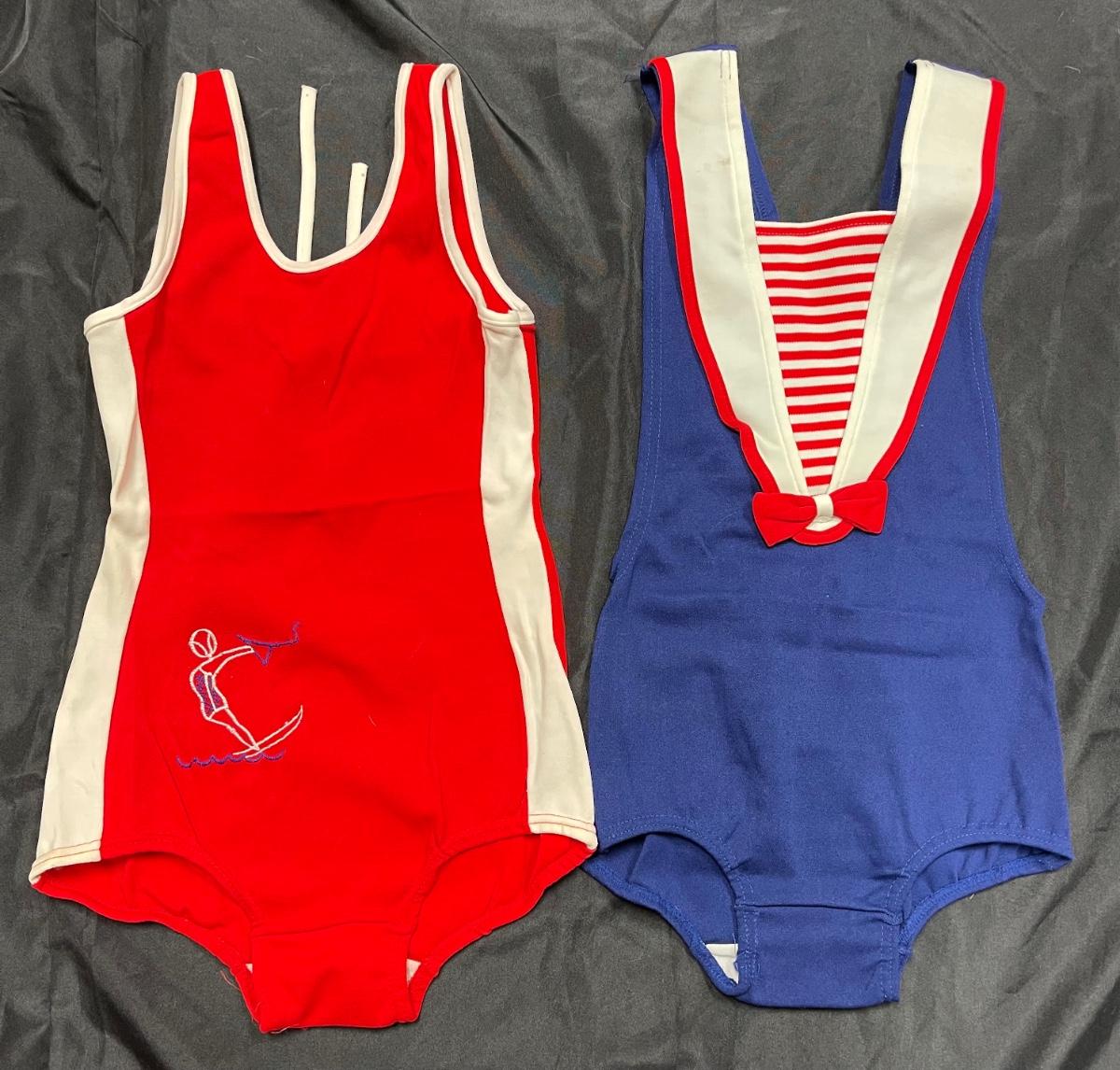 Darling Retro Red Swimsuit one-piece, Water skier Embroidered Design Sailor style vintage