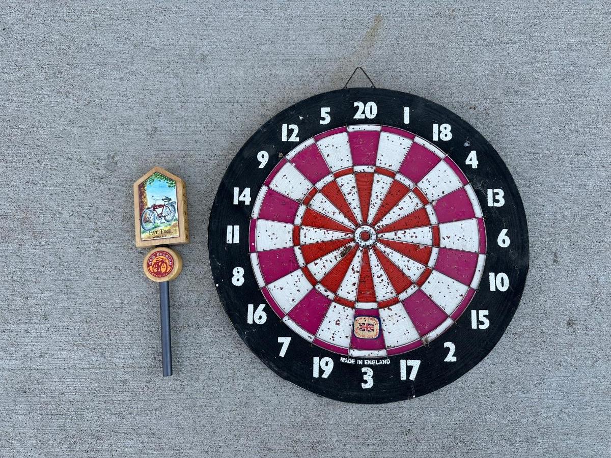 DART BOARD AND A FAT TIRE KEG HANDLE