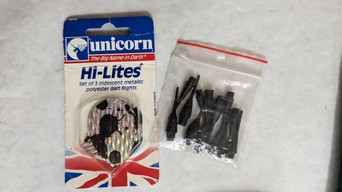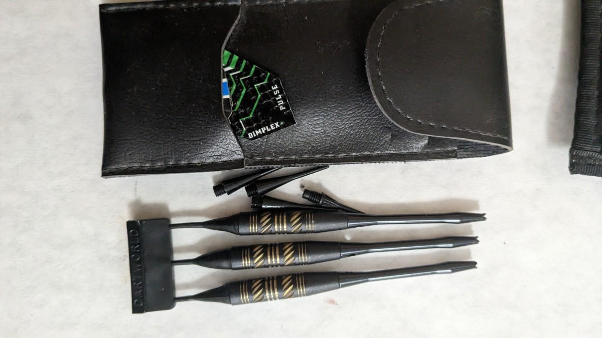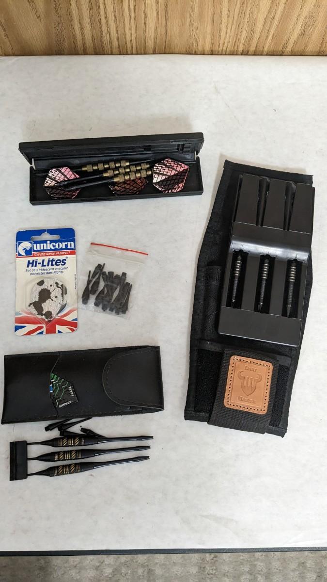 3 sets of very nice metal darts with flights and cases as well as new in package tips and extra flights. Very nice pieces in here. bdrm1