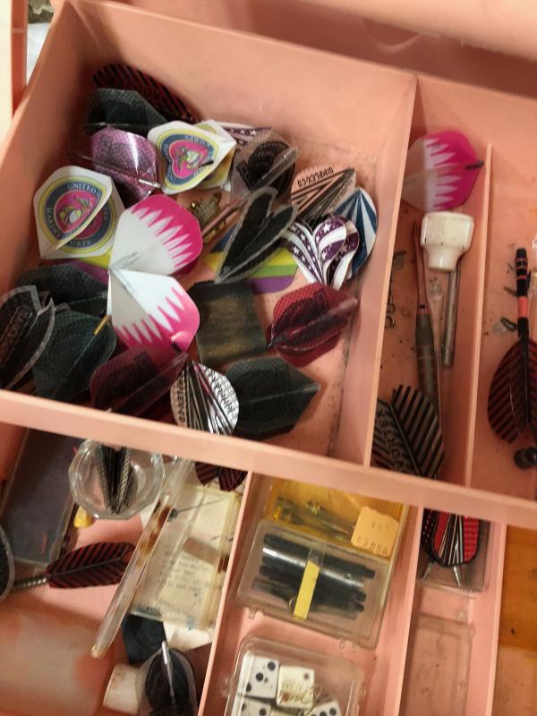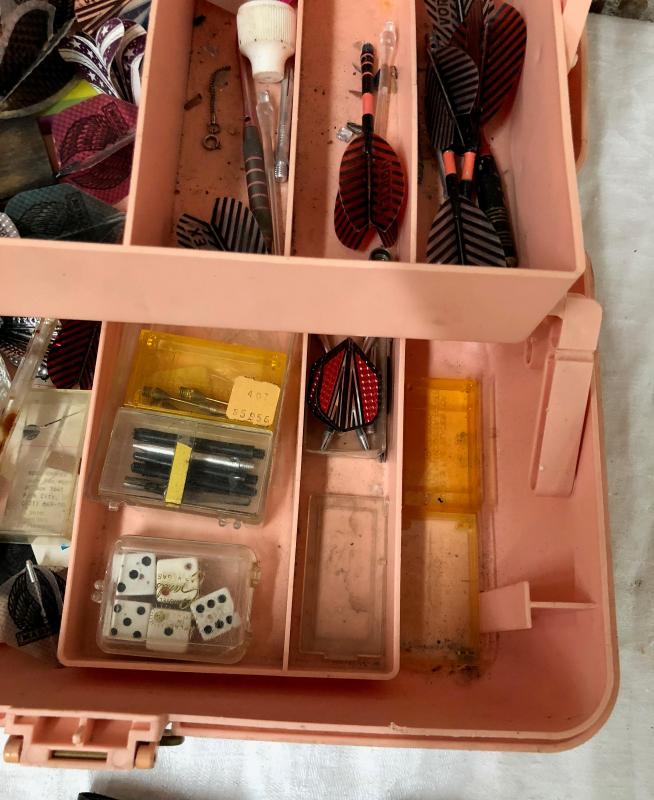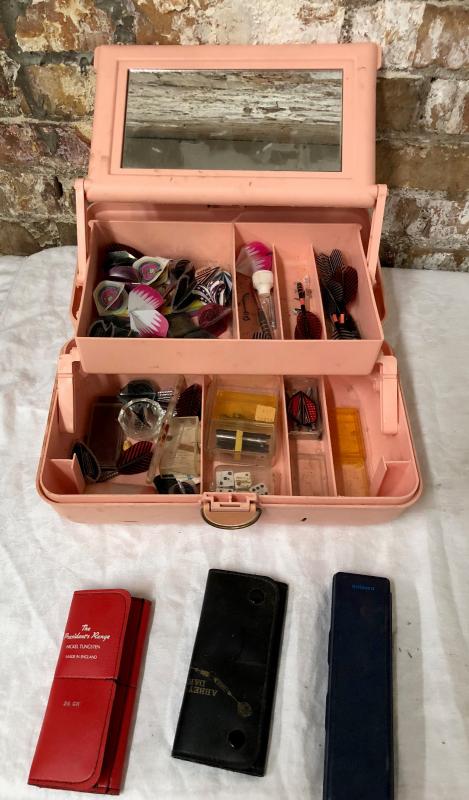 Found in a pink makeup case here are a lot of Dart making supplies...