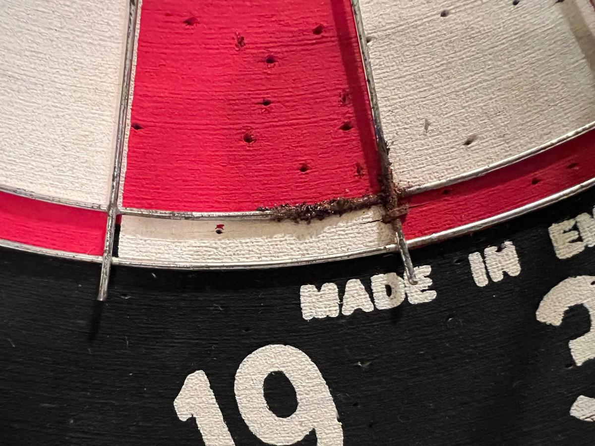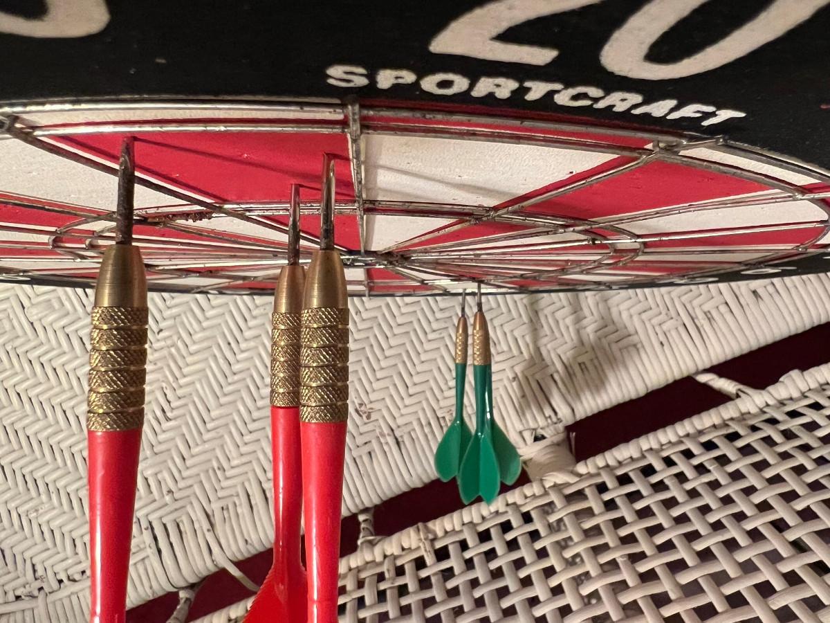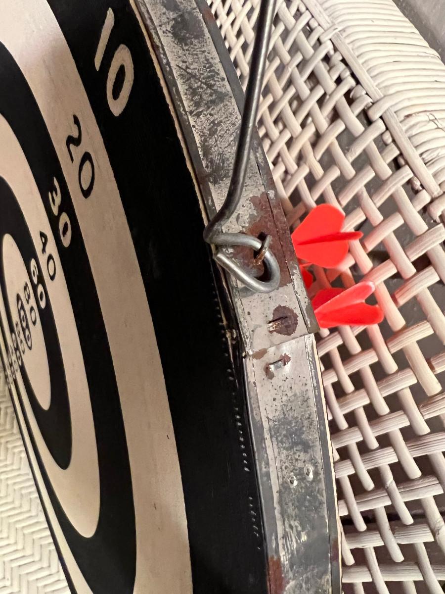 Dartboard Sportcraft 18" English board with 3 red and 3 green darts bit of rust around the edge