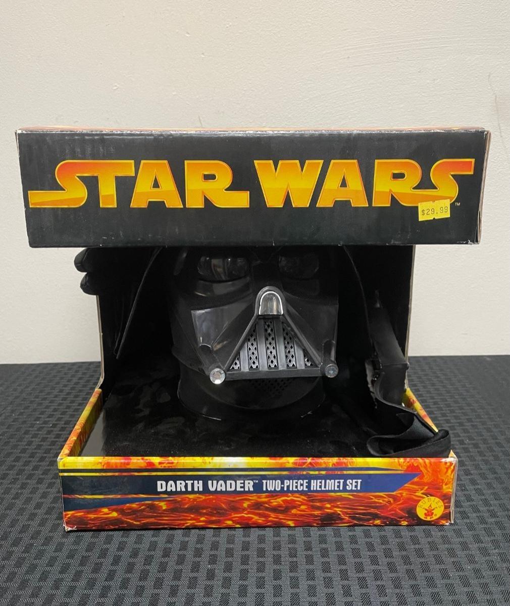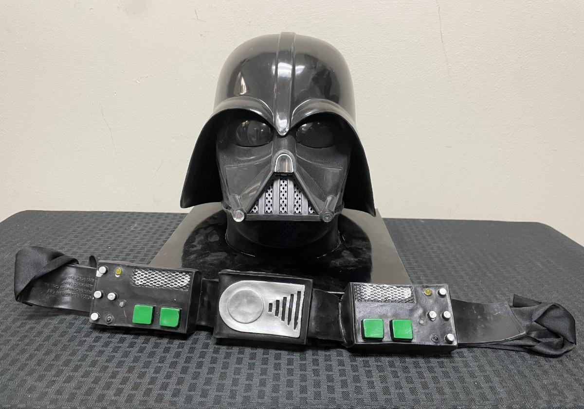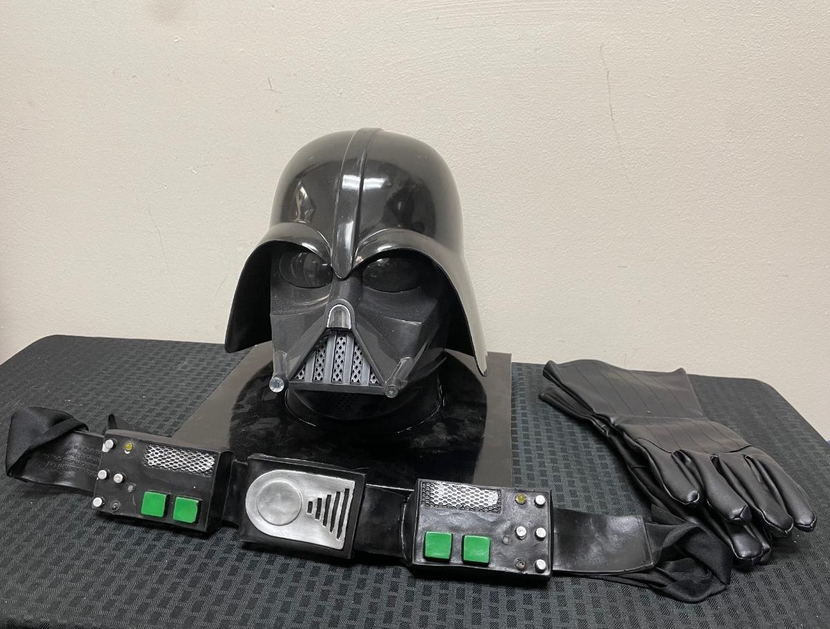 This item comes with a Darth Vader Helmet, Gloves, and a belt. All items are in good condition and are dusty due to years of ownership. The helmet is missing one gemstone on the front. All items were made in China and comes in the original packaging. Unsure if previously worn or not.