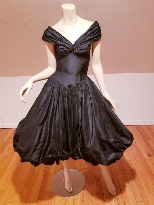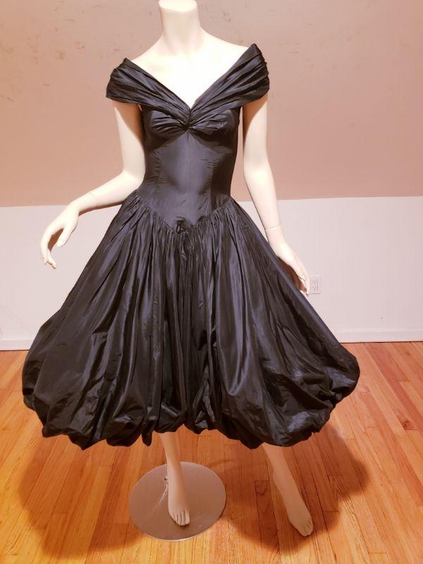 Spectacular couture dress by David Fielden England. Pure silk and bubble hem with tulle underlayer. Circa 1980