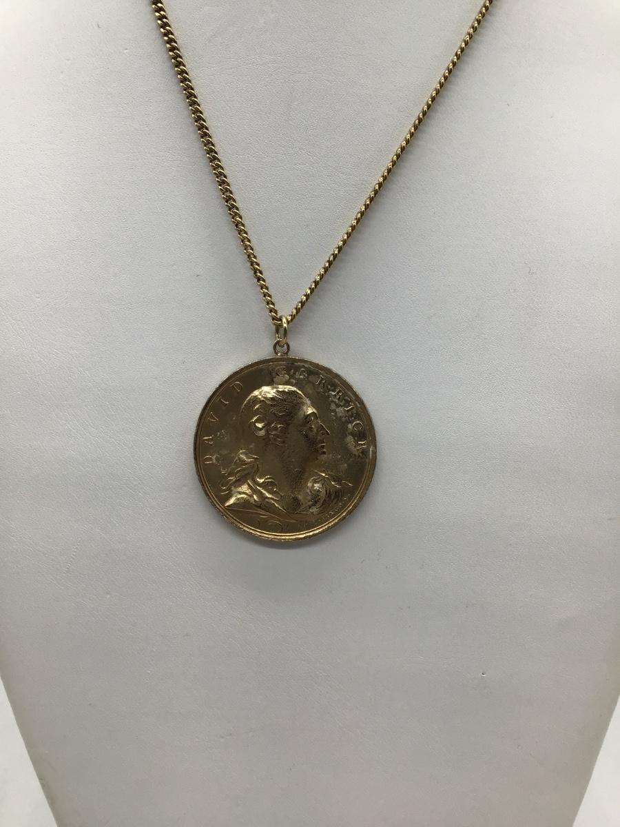 David Garrick threes muses theater medal. Pendant and necklace