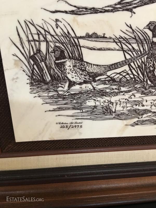 This is rendering on marble of a pheasant by the artist David Grey. #223 of a total of 2975 produced. Excellent condition measures 24" by 21". Sold as -is, Please do not hit the buy button unless you intend to pay for the item. Please look at the pictures associated with an item before bidding; the pictures are part of the description. I am willing to negotiate price on this item contact me with an offer. Shipping available in the US.