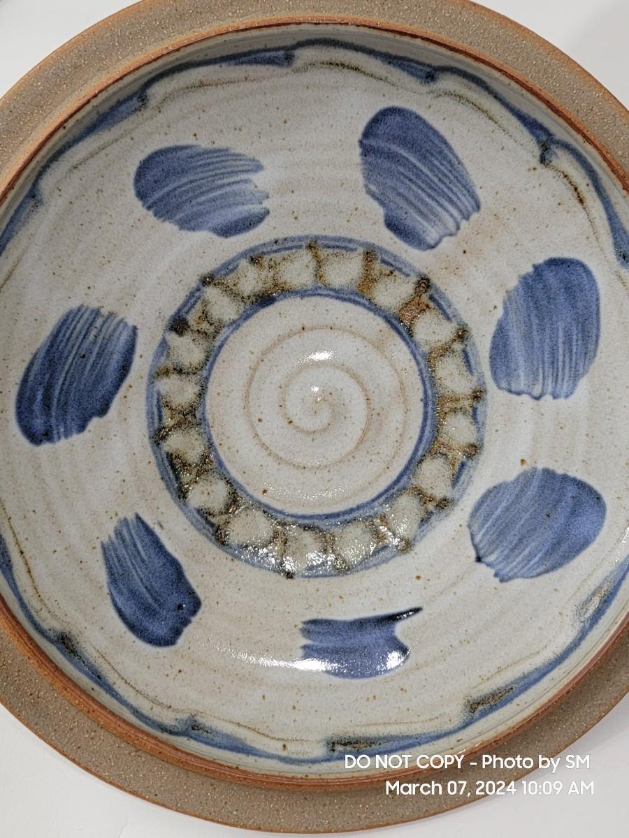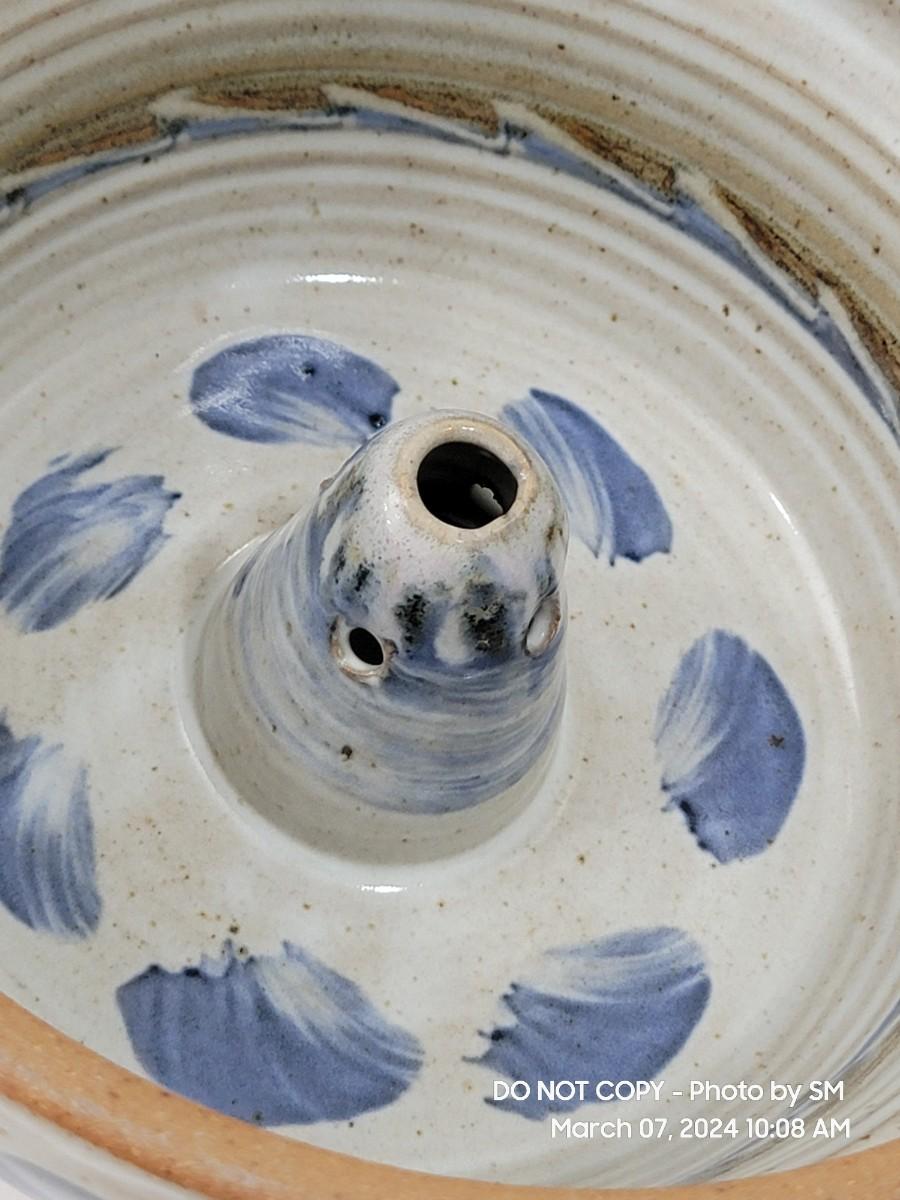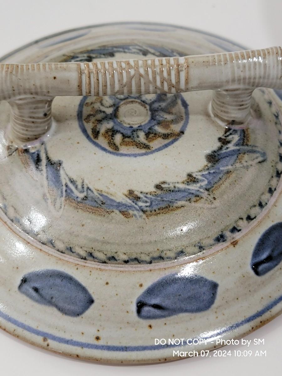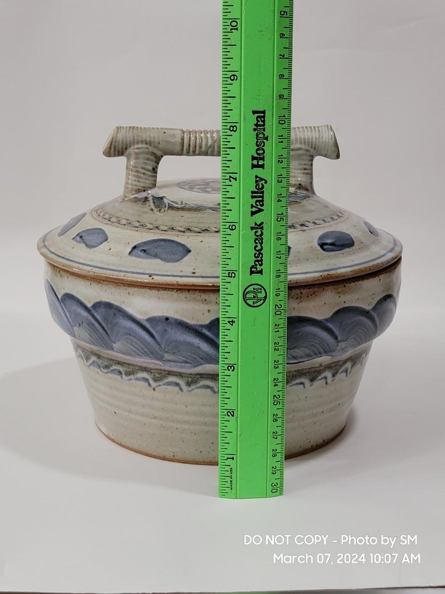 Fabulous David Norton Hand Thrown Steamer Pot Stoneware Pottery Blue and white or tann-ish. No chips no cracks.