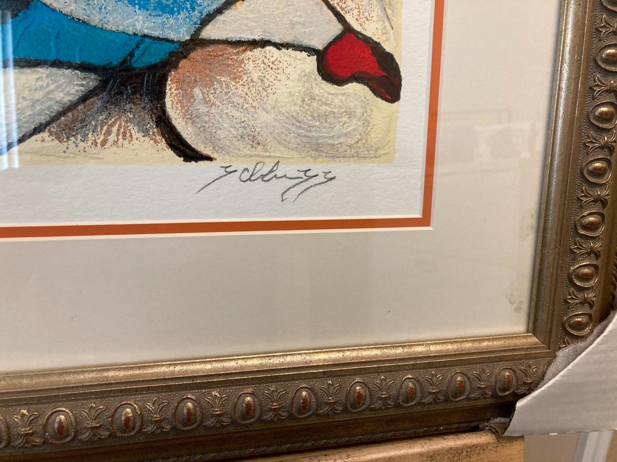 Excellent condition. Measures 33”w x 28”h overall. Artwork alone measures 22” x 18”h. Includes professional matting and gallery frame shown. Please see pictures for details. Packaging and shipping services available. Please contact us, if you need a shipping quote, before bidding.