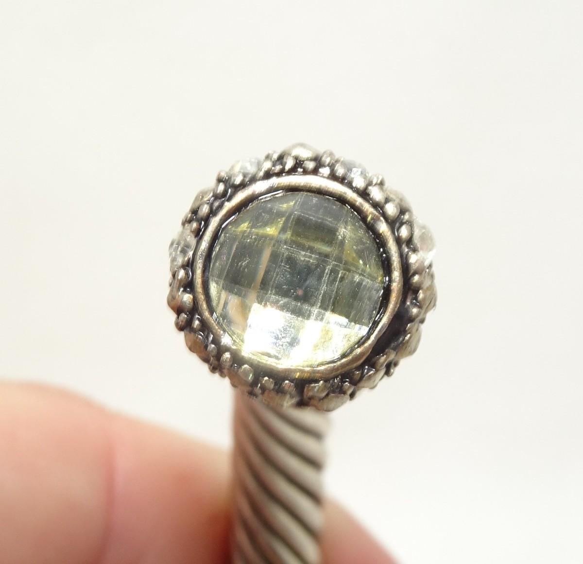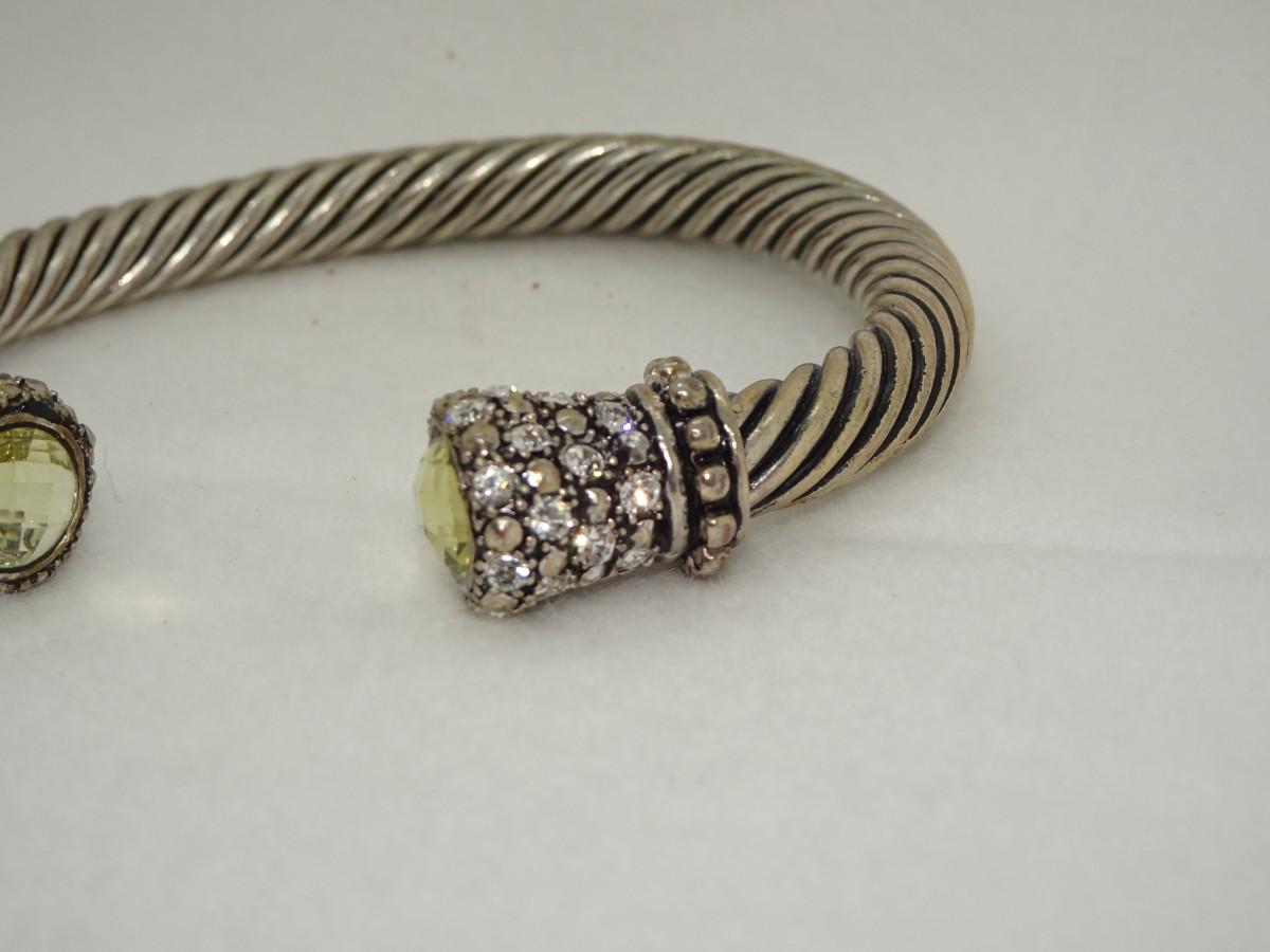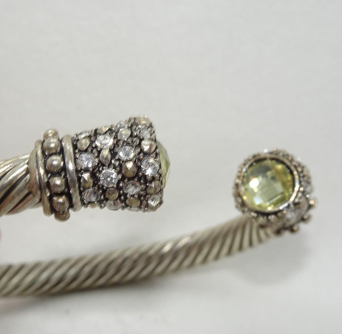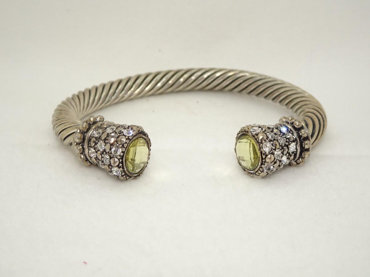 David Yurman Inspired Twist Cuff Bracelet - Not David Yurman Cable Style, Rhinestone, Citrine Colored Center Stone