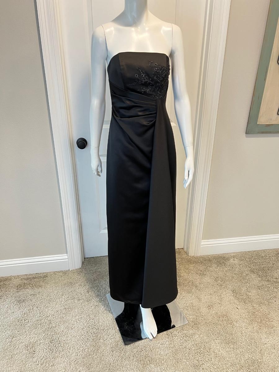 DAVIDS BRIDAL ~ Size 2 ~ Strapless Black Gown With Beaded Flower Accent
