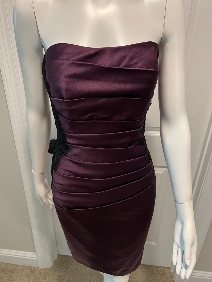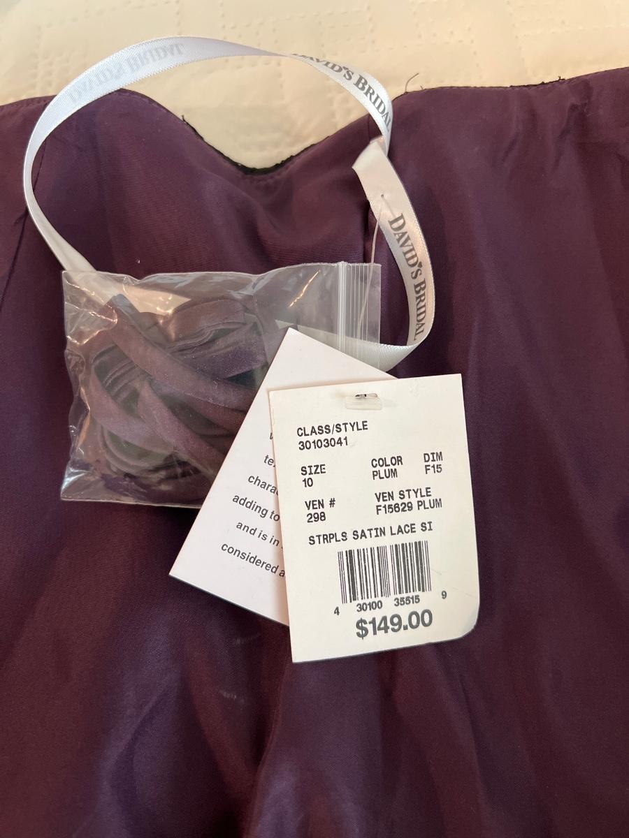DAVIDS BRIDAL ~ Size 10 ~ Strapless Satin Lace Plum Dress ~ New