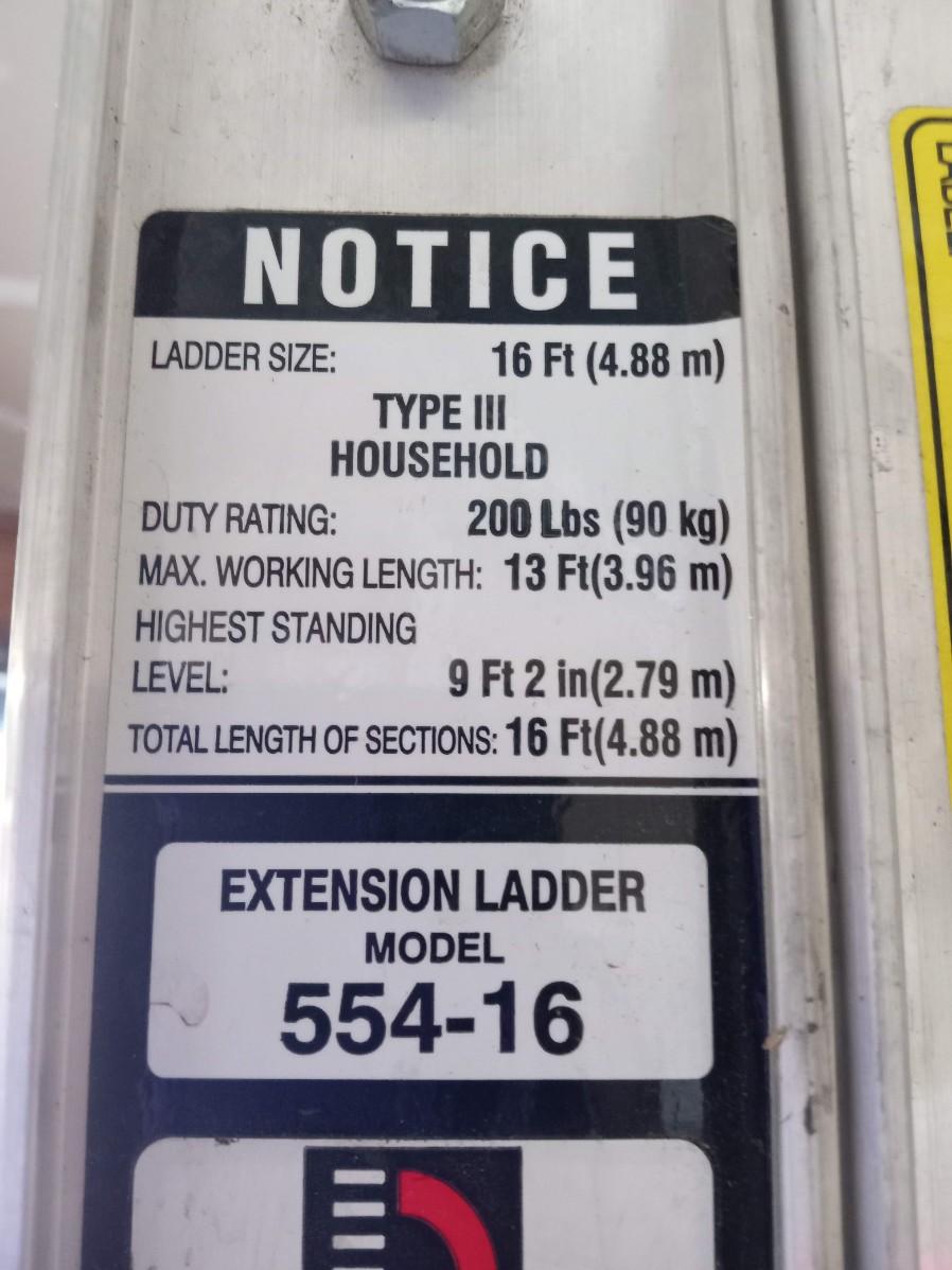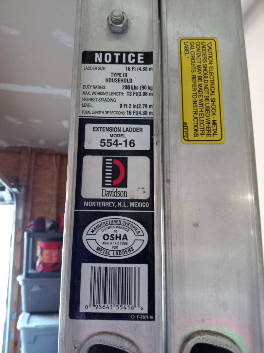 DAVIDSON 16 FT ALUMINUM EXTENSION LADDER