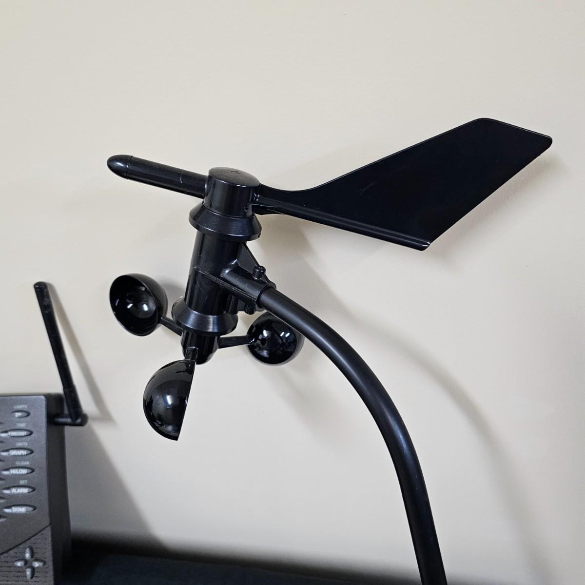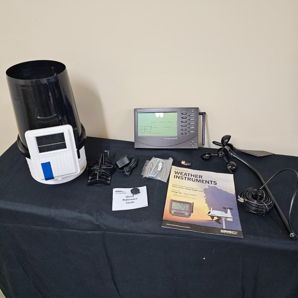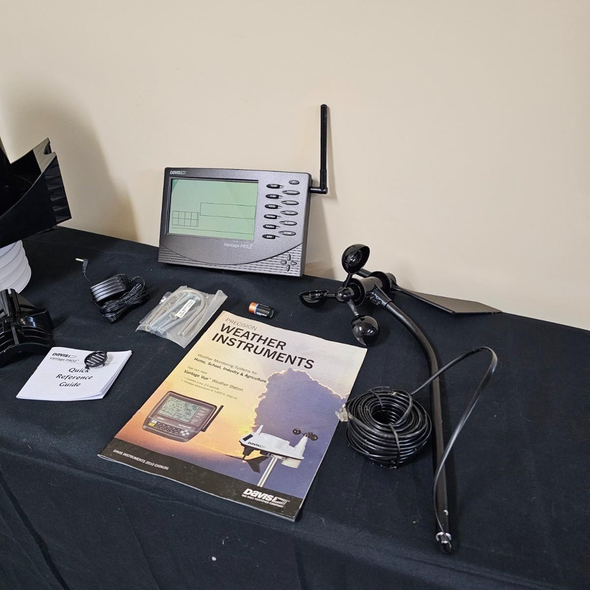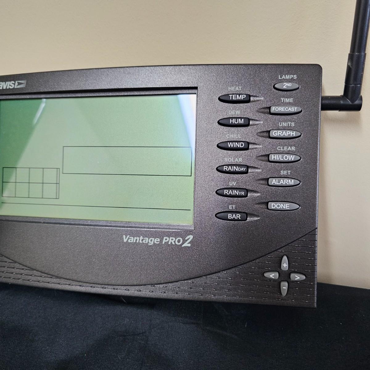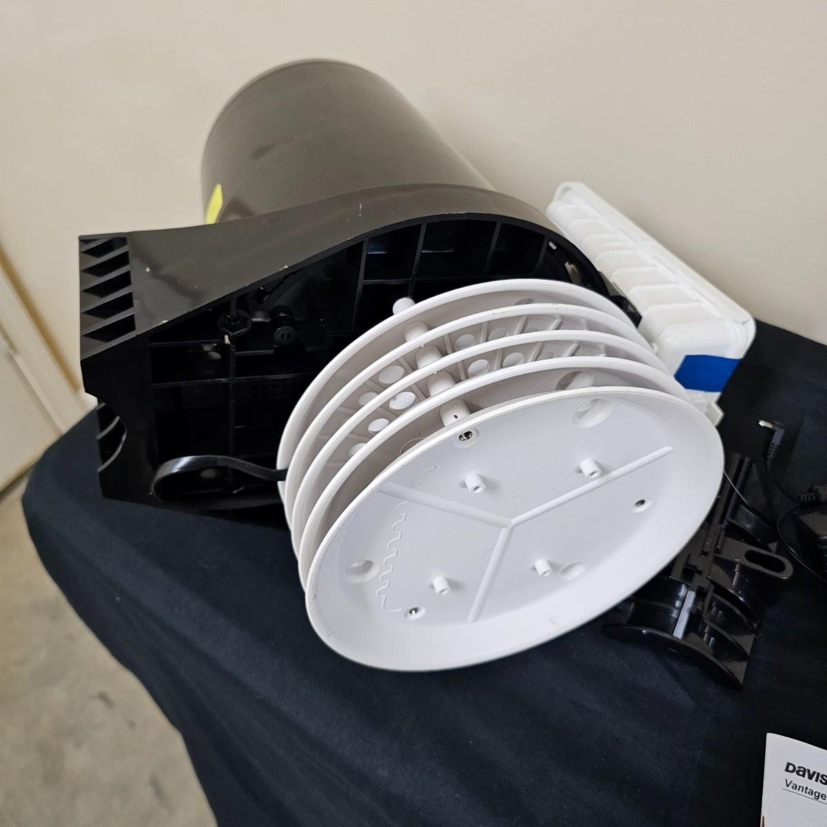 Outdoor sensor unit shows barometric pressure, humidity & dew point, rainfall, temperature, wind and more. Hardware connects to inside console unit, or can be done wireless with optional accessories. Unit powered on when plugged in, but outside pieces not tested. Box has been opened, all pieces may not be present. See photos for details. Shipping available.