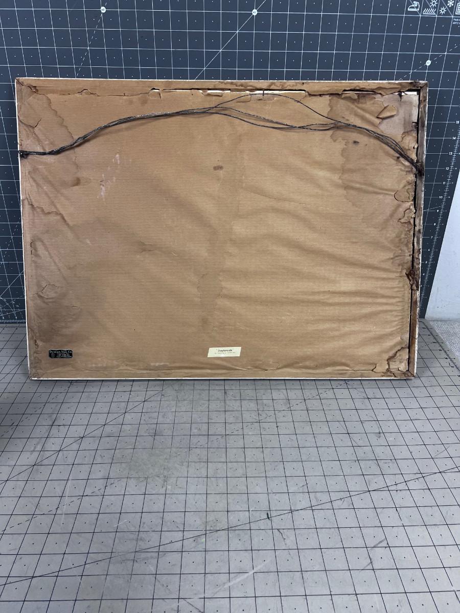 25 x 19. Fair Condition. Damage to the Frame. Print could be sun faded.