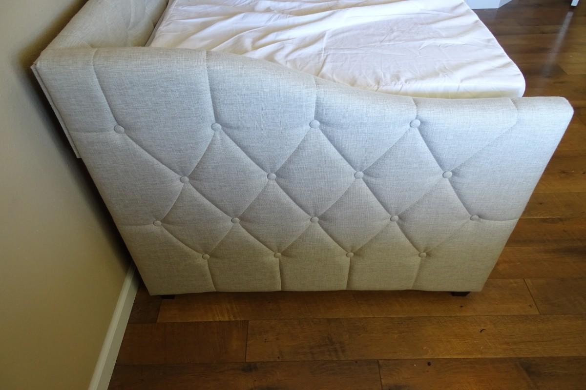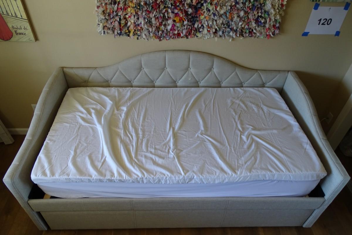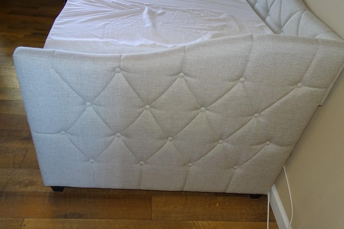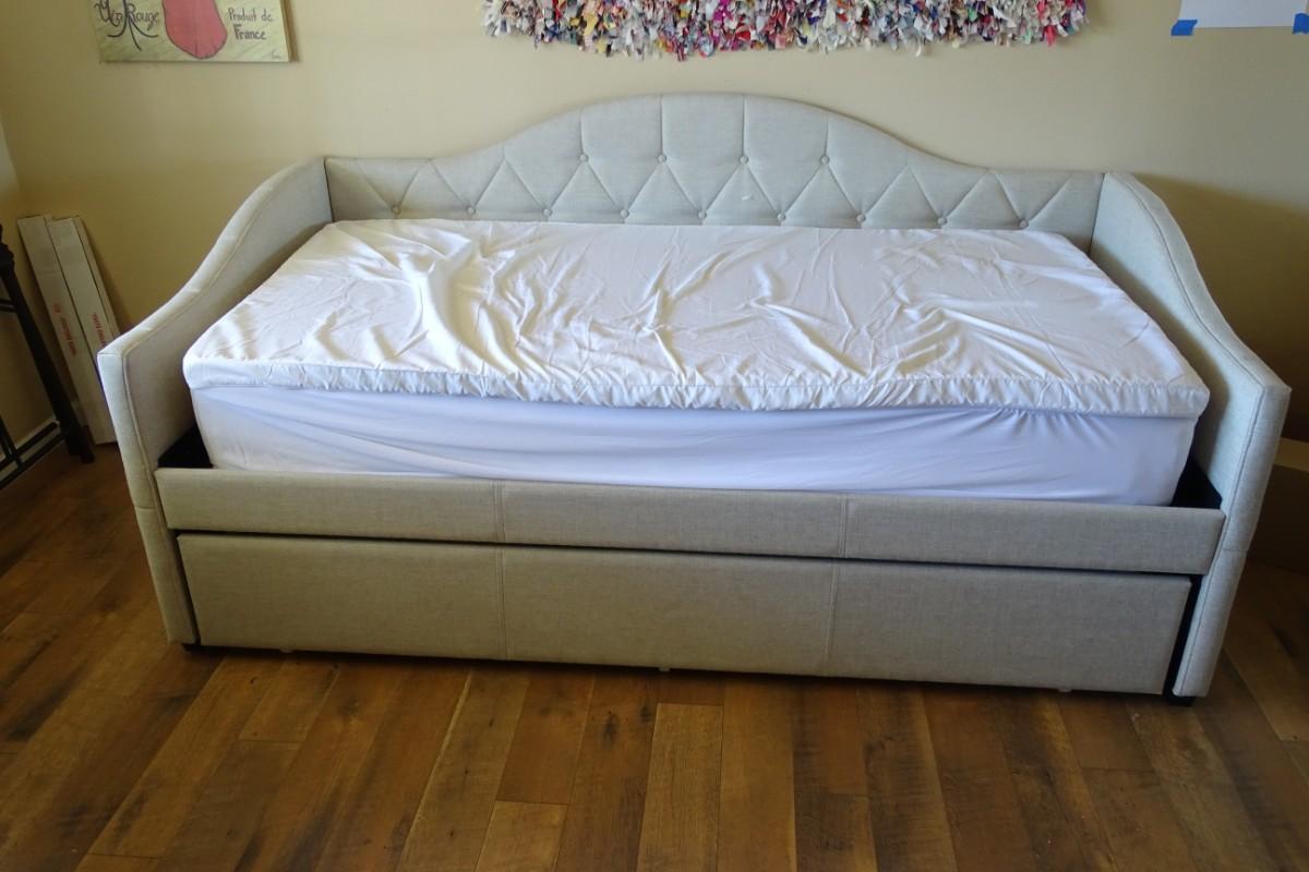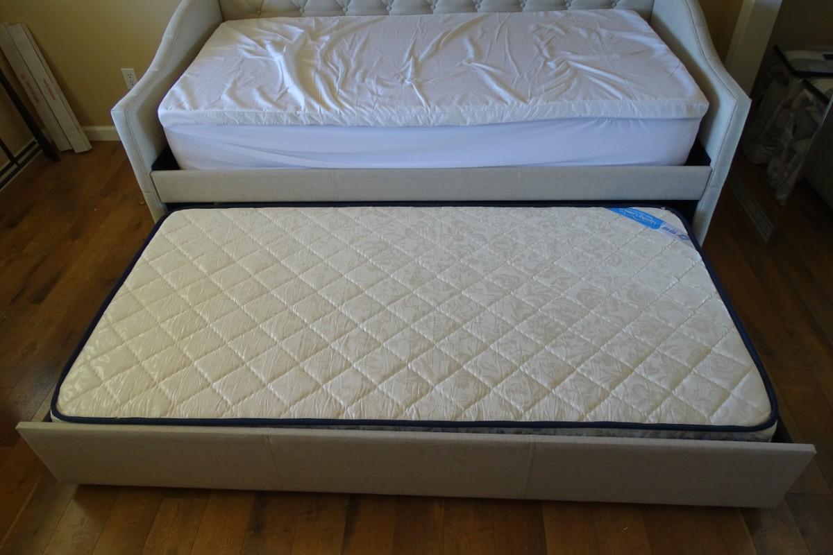 Twin Tufted Fabric Day Bed with Trundle and Two Twin Mattresses