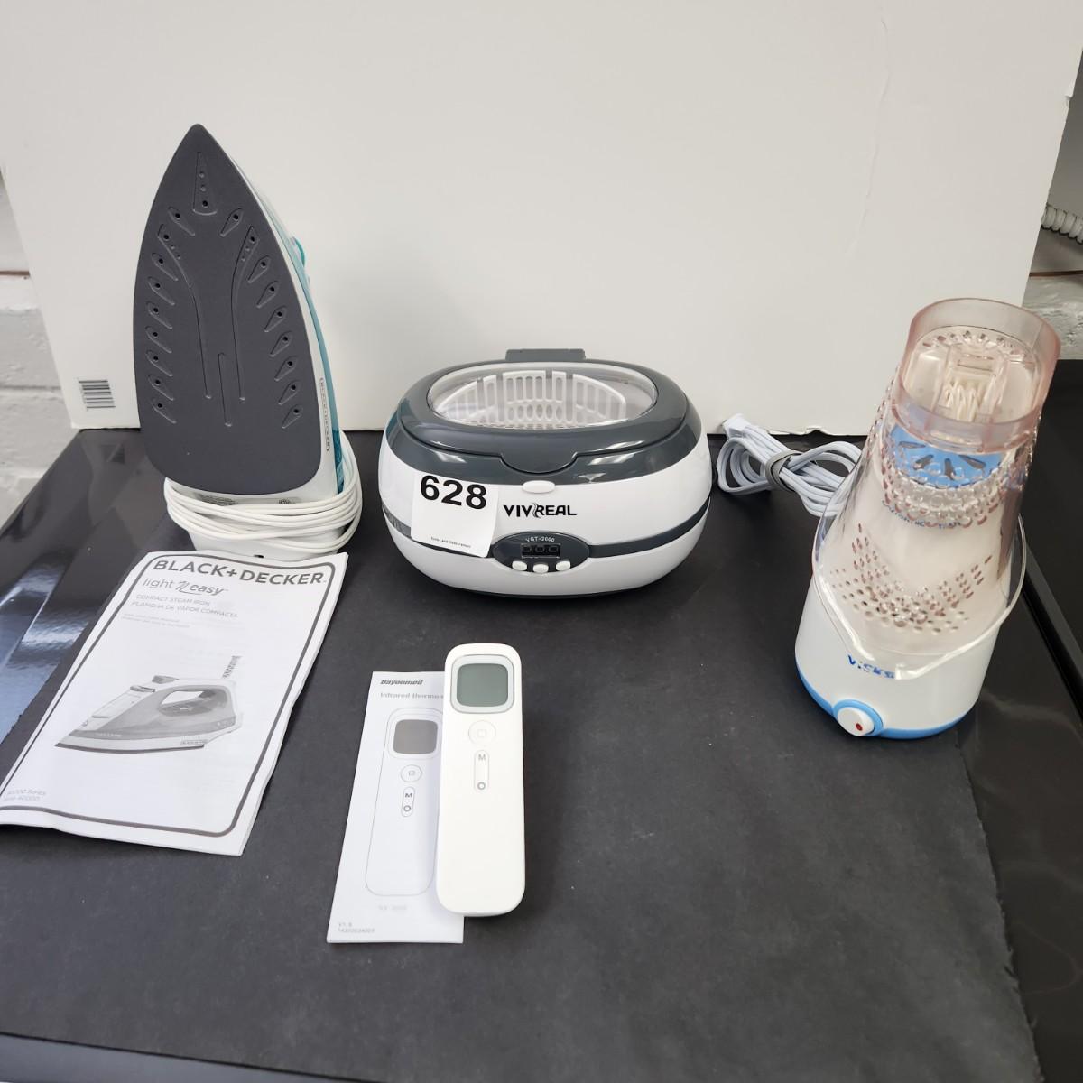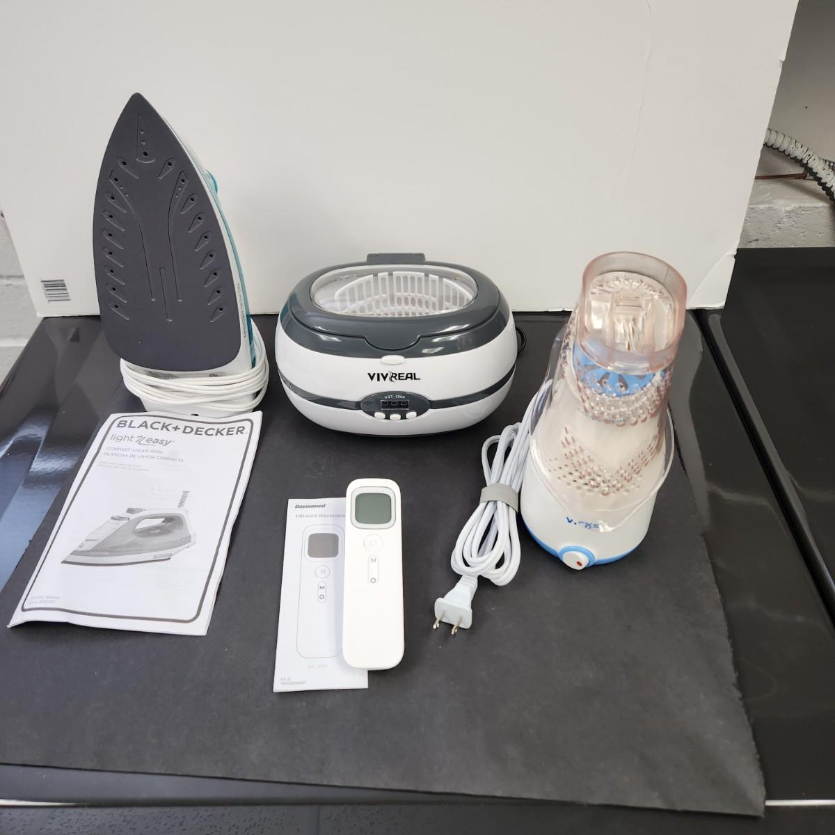Lot of 4 Small Appliances  B&D Iron Viv real Ultrasonic Cleaner Vicks InhaIer nfrared Thermometer