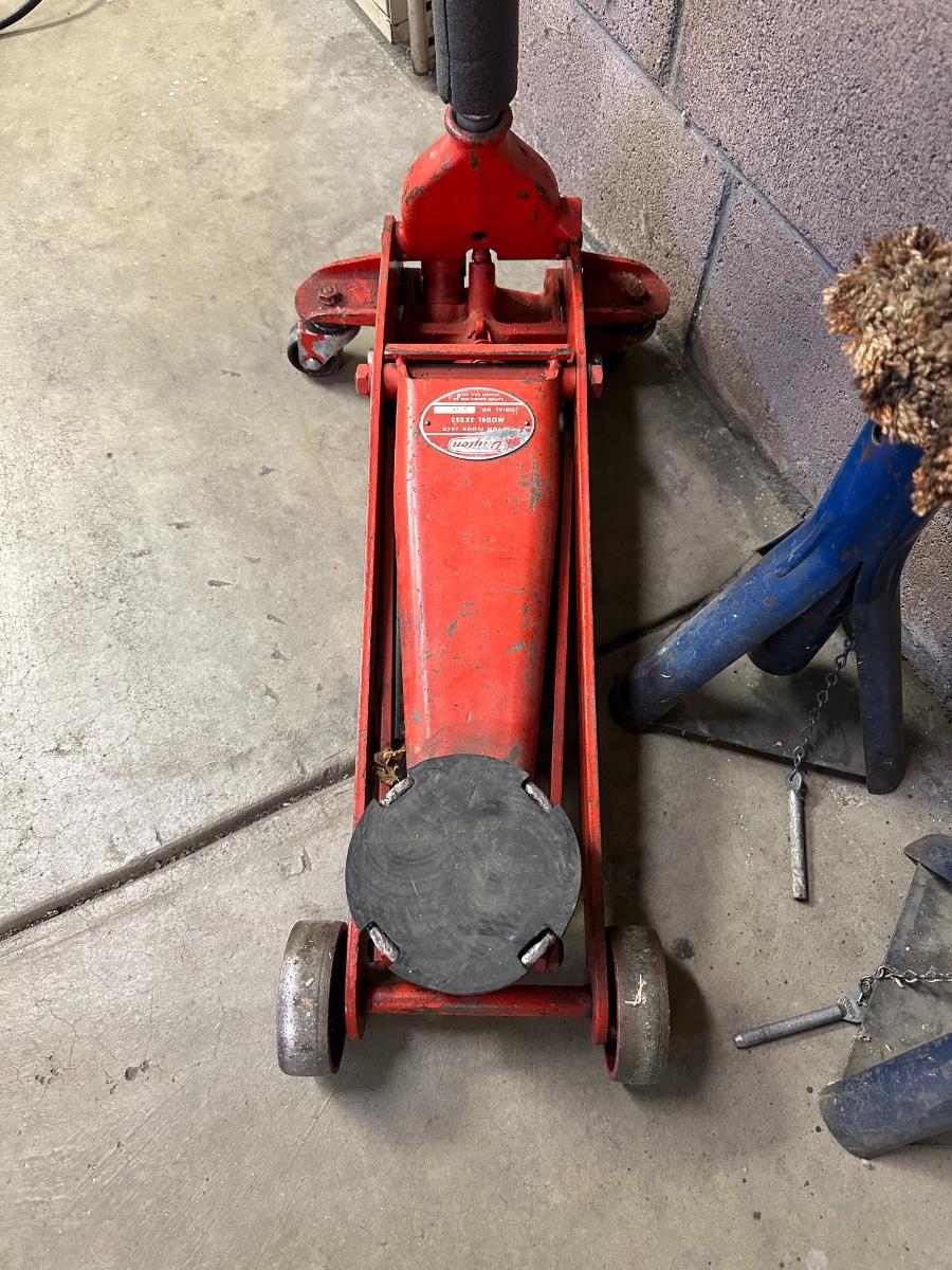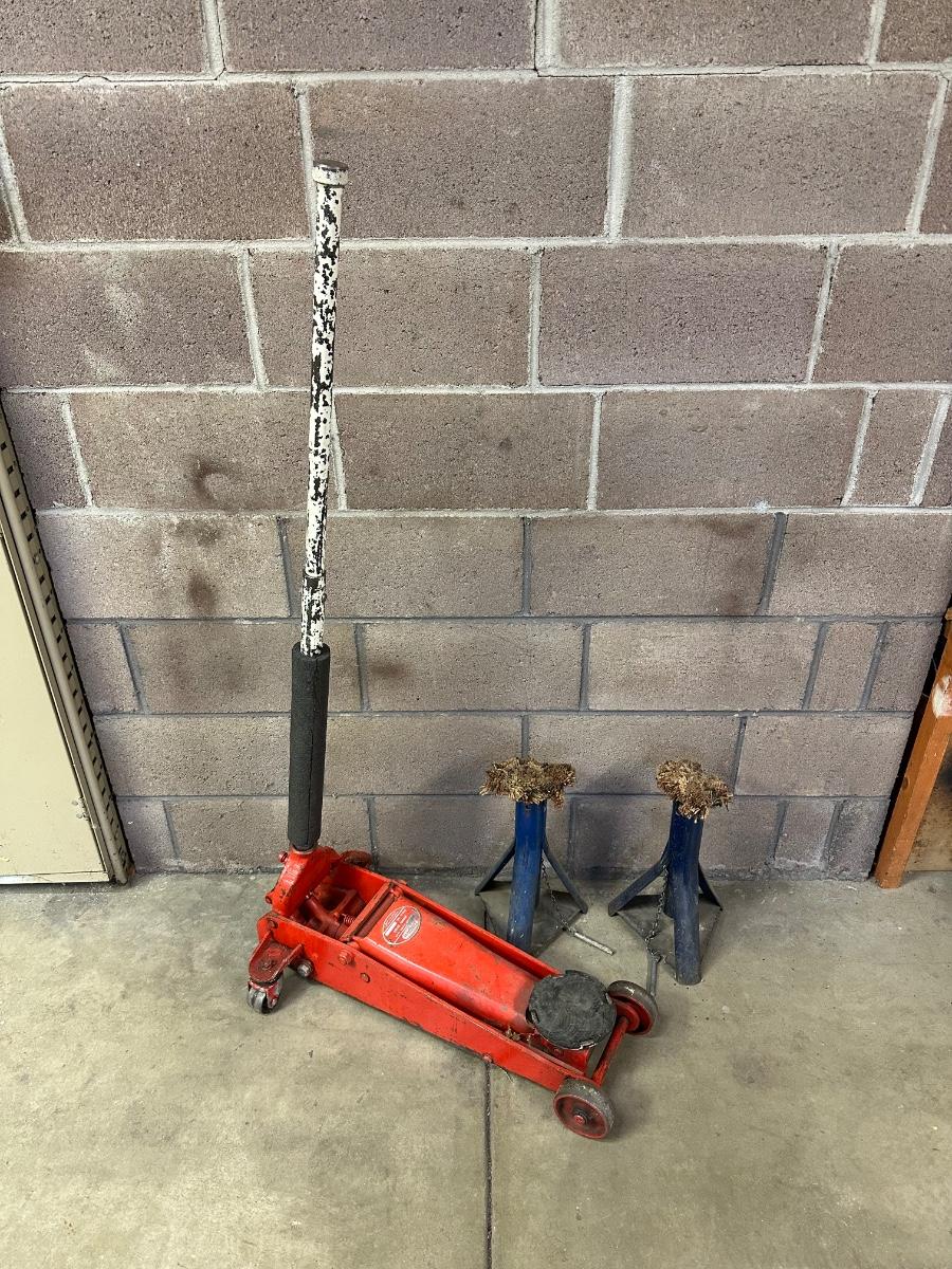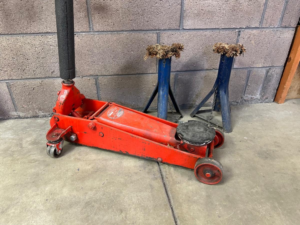 DAYTON FLOOR JACK AND A PAIR OF JACK STANDS