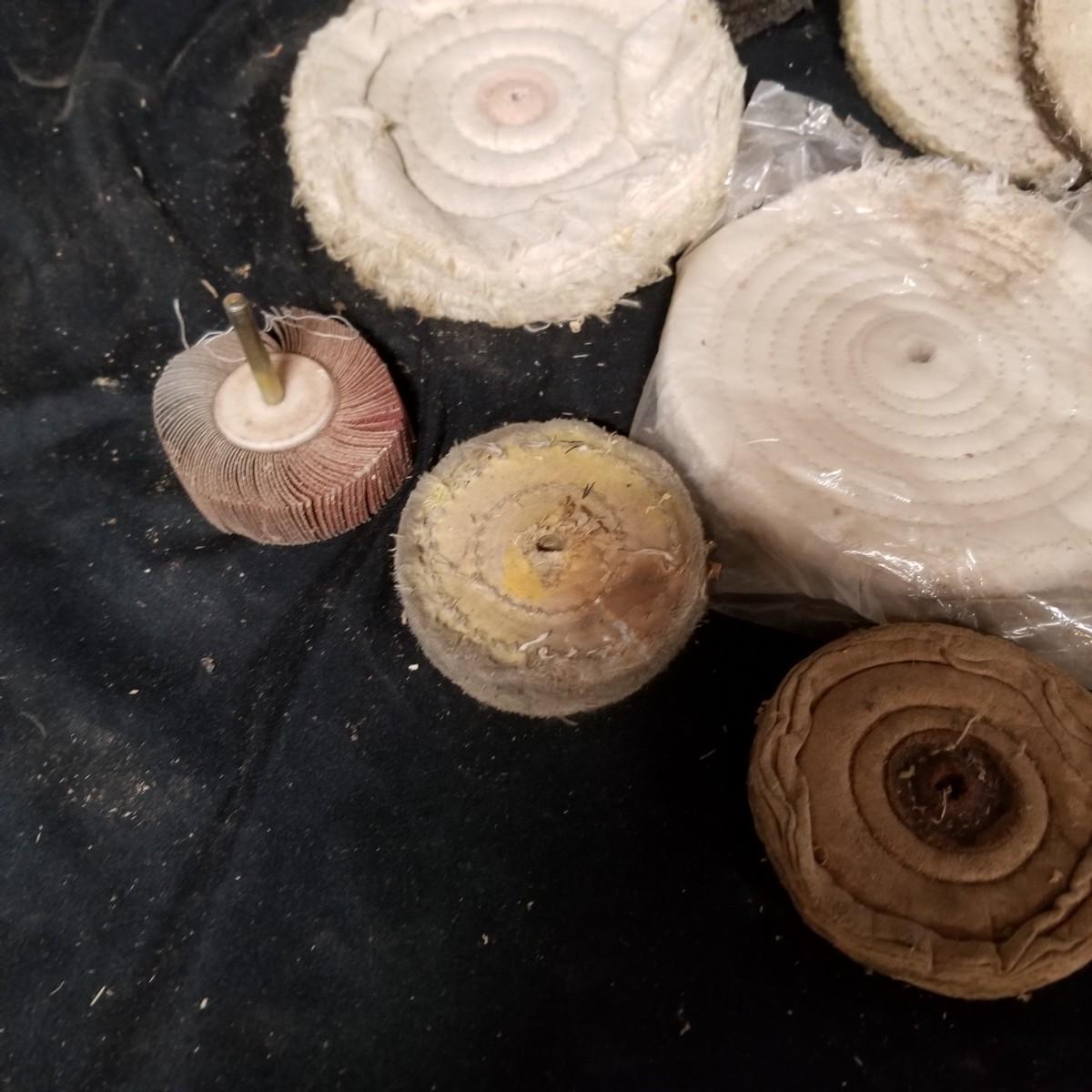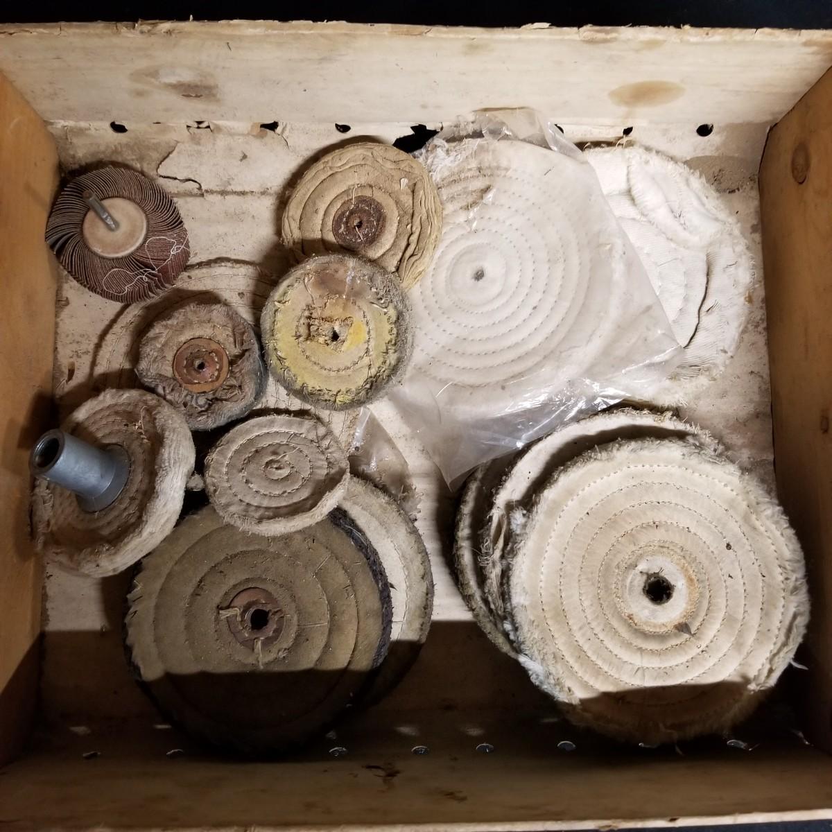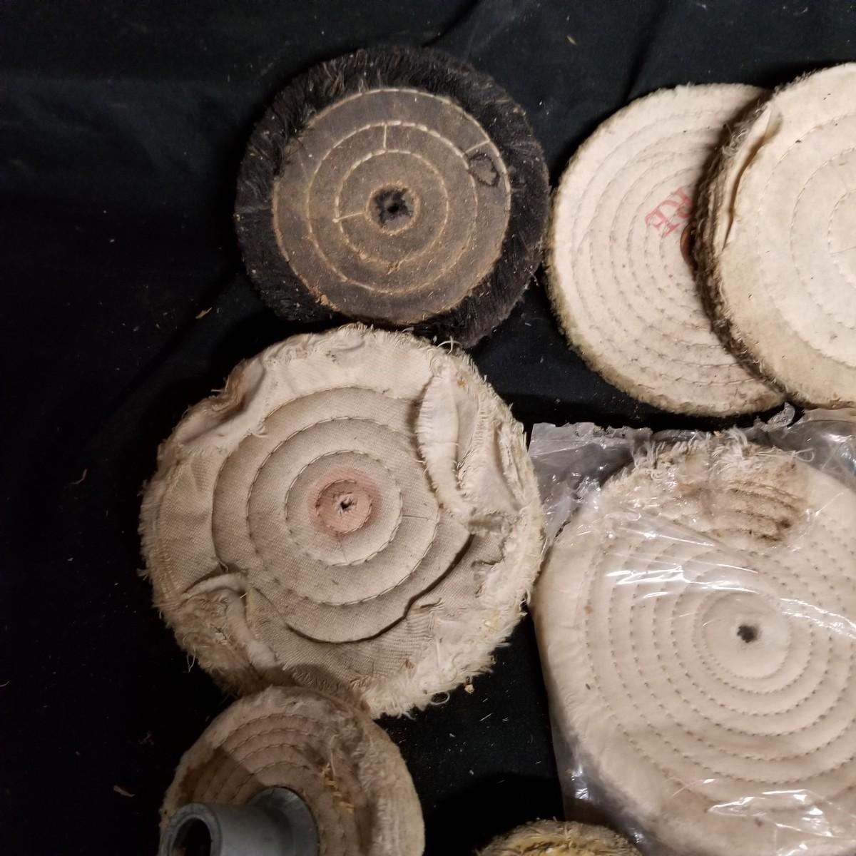 1/2 hp Dayton motor with buffer mandrel on end. Motor ran when tested. Inline switch, cord shows some fraying. Includes fourteen additional buffing wheels. Item is 15" x 7" x 9". Has safety shield on buffer end. Must be removed from workbench. Local pickup only.